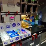 W czasie gdy jedna ze Stewardess rozdaje każdemu butelki z wodą, część pasażerów układa się do snu, a część relaksuje oglądając filmy lub czytając książki. W trakcie lotu, pomiędzy głównymi serwisami, można skorzystać z mini baru ze słodkimi i słonymi przekąskami, które załoga ustawiła w koszyczkach na blacie przed pierwszym rzędem środkowych foteli oraz w galley, lub zamówić tortillę na ciepło.