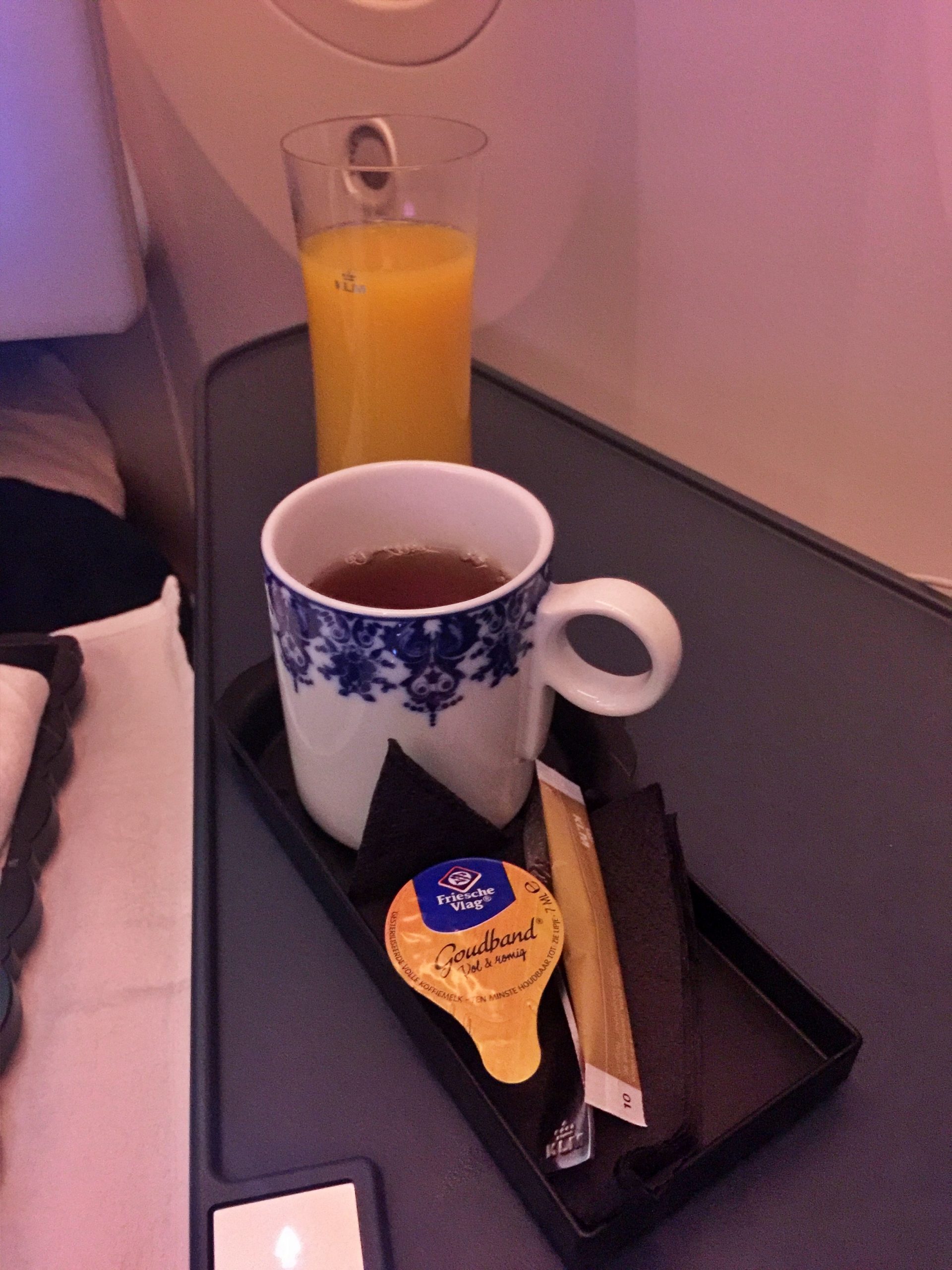 To był dobry lot. Nie wybitny, ale przyzwoity. Załoga przemiła, chociaż trochę mniej aktywna pomiędzy serwisami niż na locie z Amsterdamu do Hong Kongu. Jedzenie w większości smaczne, miłym akcentem były dania chińskie. Najmniej zadowoleni byliśmy z fotela, który w naszym odczuciu nie był, jak na klasę biznes, najwygodniejszy. Mimo niezaprzeczalnie lepszej konfiguracji 1-2-1 w Boeing B787 Dreamliner, wolimy siedzenia starszego typu w KLM.