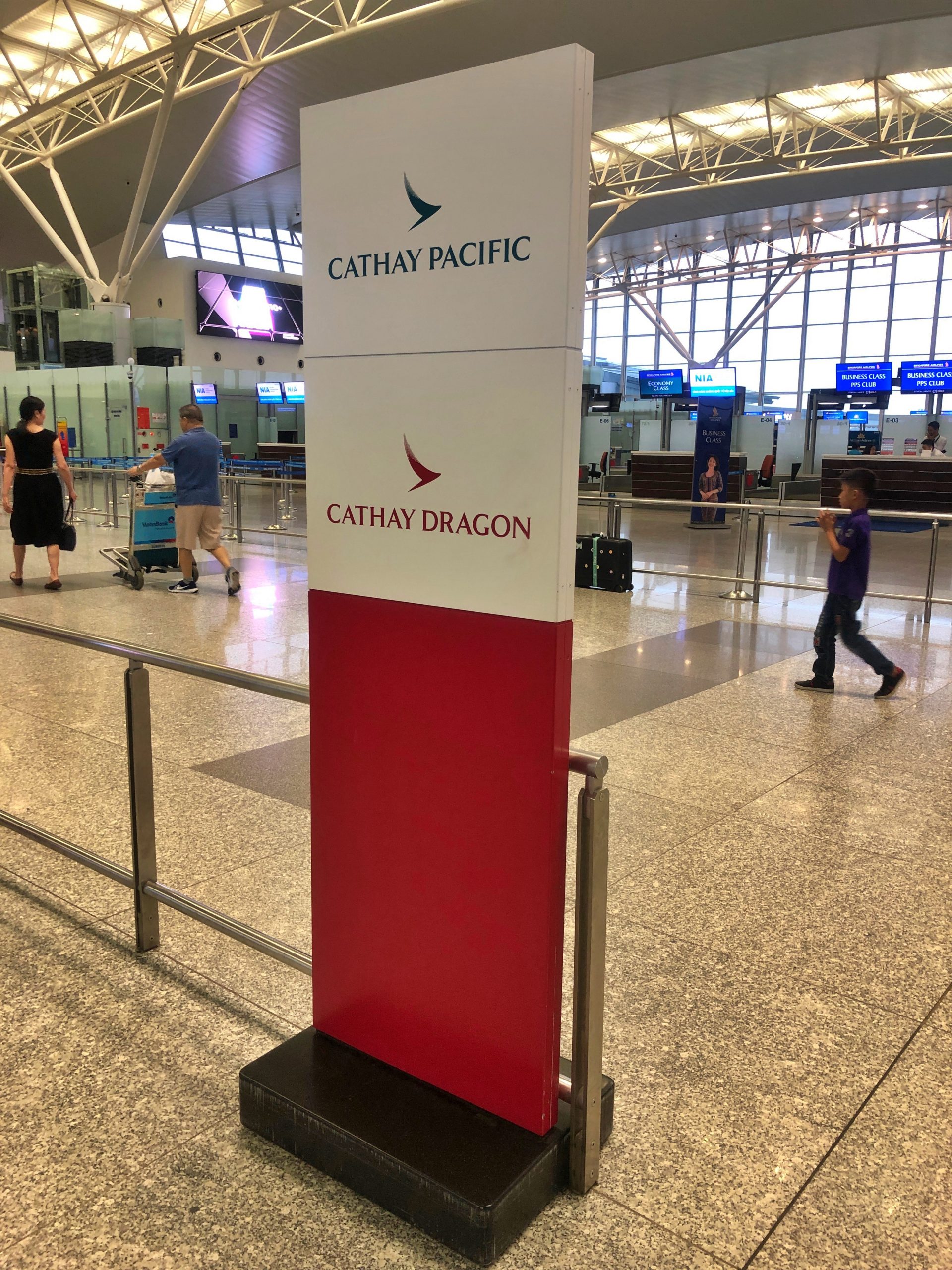 Cathay Dragon – Klasa Biznes w Airbus A320 Hanoi – Hong Kong – stanowiska odprawy linii Cathay Pacific na lotnisku w HanoiCathay Dragon – Klasa Biznes w Airbus A320 Hanoi – Hong Kong – stanowiska odprawy linii Cathay Pacific na lotnisku w Hanoi