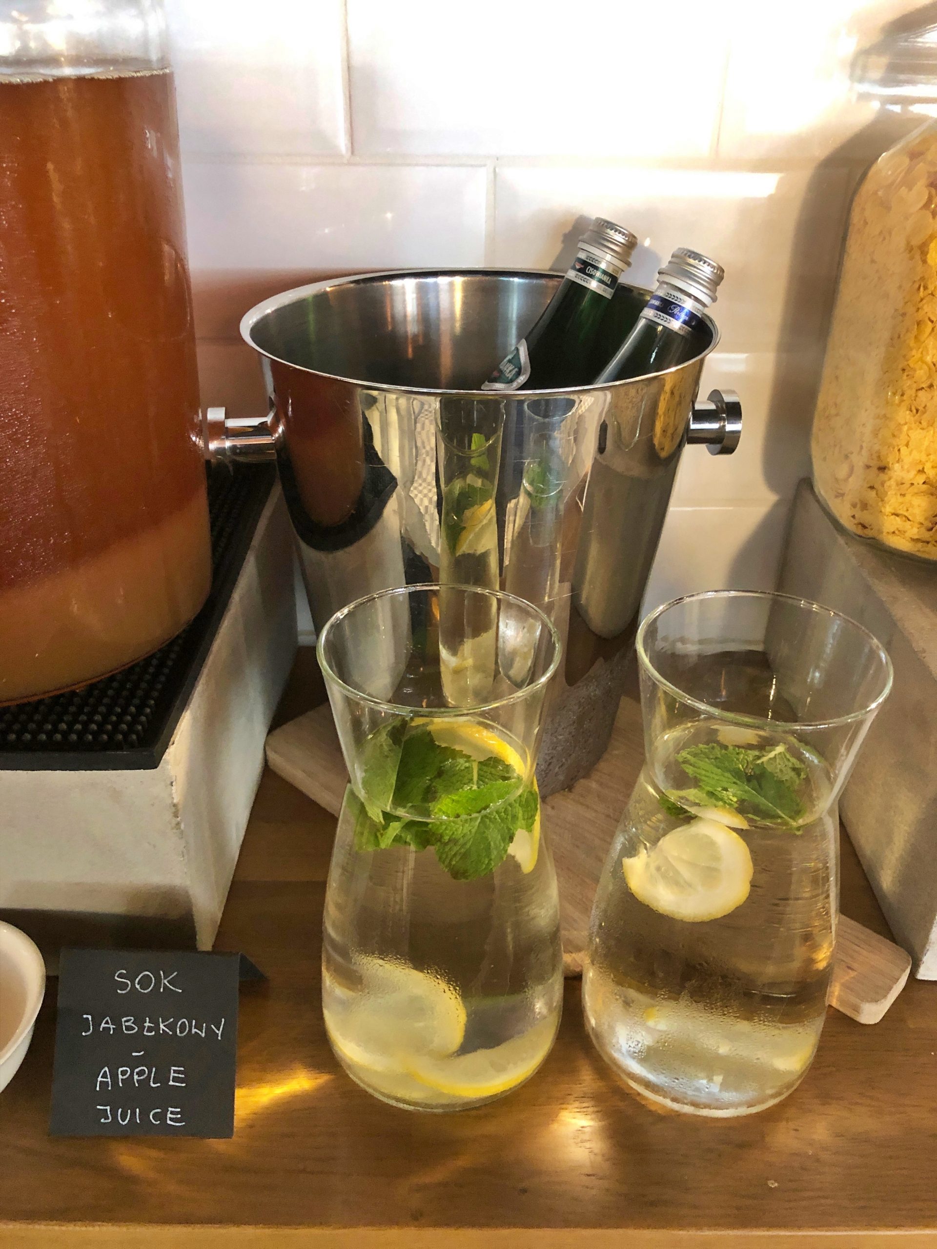 Radisson Rewards – Park Inn by Radisson Poznań – śniadanie – bufet – sok jakbłkowy, woda