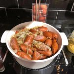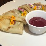 My wolimy skorzystać z oferty restauracji na miejscu. Tym razem decydujemy się na pyszny, lekko słodkawy, pełen warzyw chłodnik, pyszne pappardelle ze świeżymi kurkami, oraz pierś z kurczaka z bobem i kurkami. Wszystkie dania są wyśmienite, porcje ogromne, a będące wtedy w sezonie kwiaty jadalne stanowią piękną ozdobę i wykończenie wszystkich naszych dań.