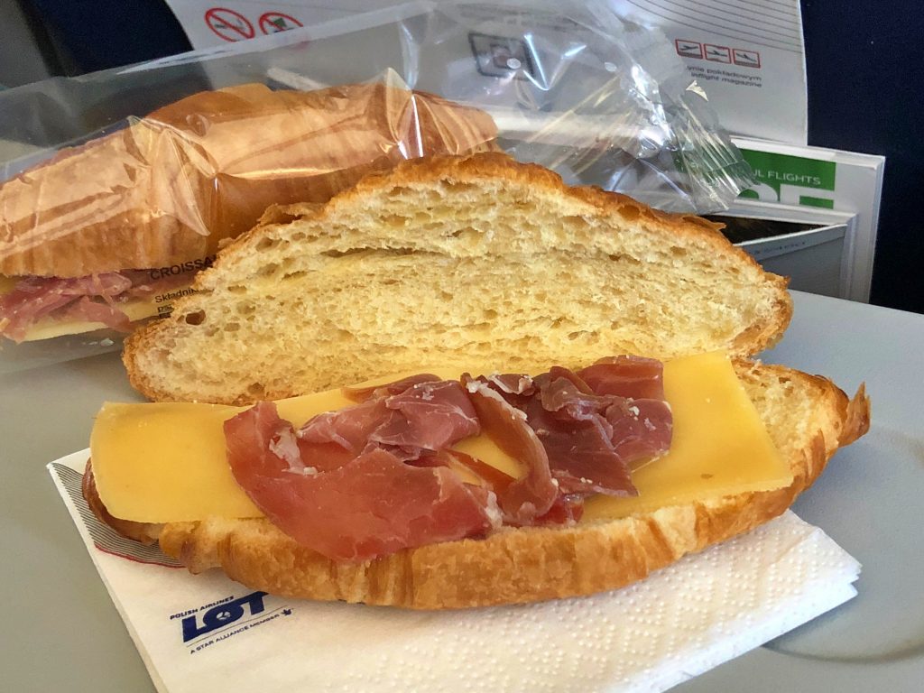 LOT Gourmet – Sky Bar – croissant maślany z serem gouda i szynką dojrzewającą