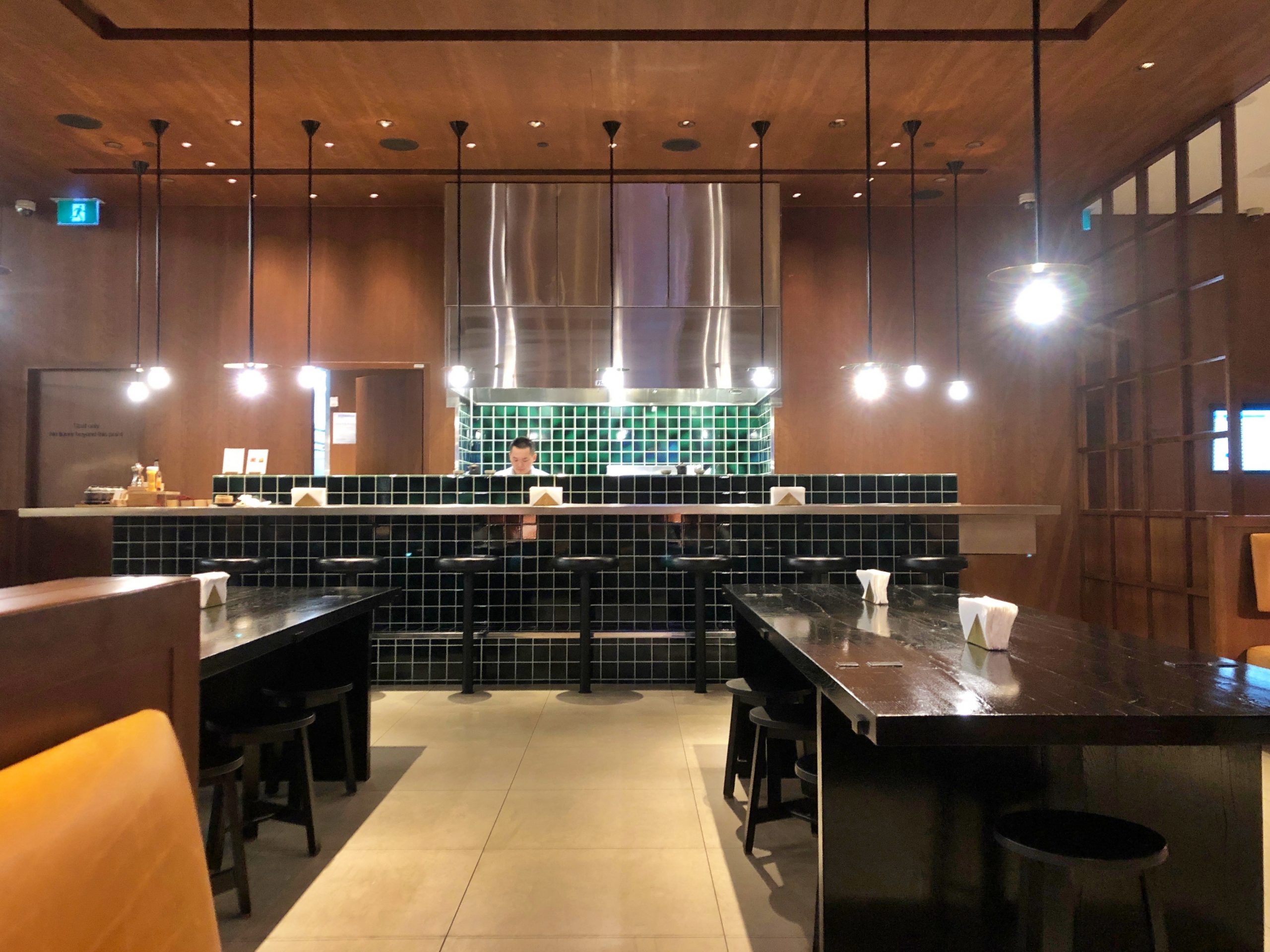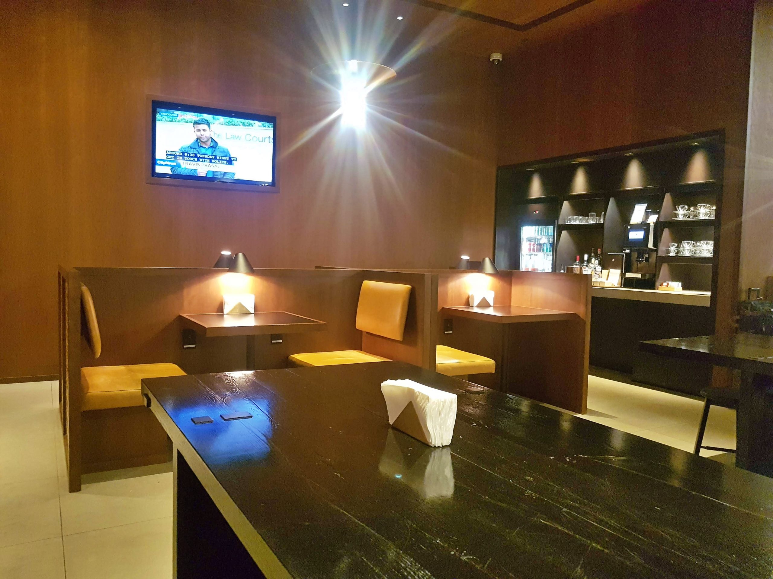 Lounge na pierwszy rzut oka jest podobny do saloniku Cathay, który mieliśmy okazję odwiedzić na lotnisku w Bangkoku. Drewniane, ażurowe ścianki wyznaczają kilka stref funkcjonalnych – wypoczynkową, bufet, strefę do pracy. Jest też oczywiście ikoniczny Noodle Bar, czyli niewielka część restauracyjna, w której pasażerowie oczekujący na swój lot mogą zamówić dania a’la carte.