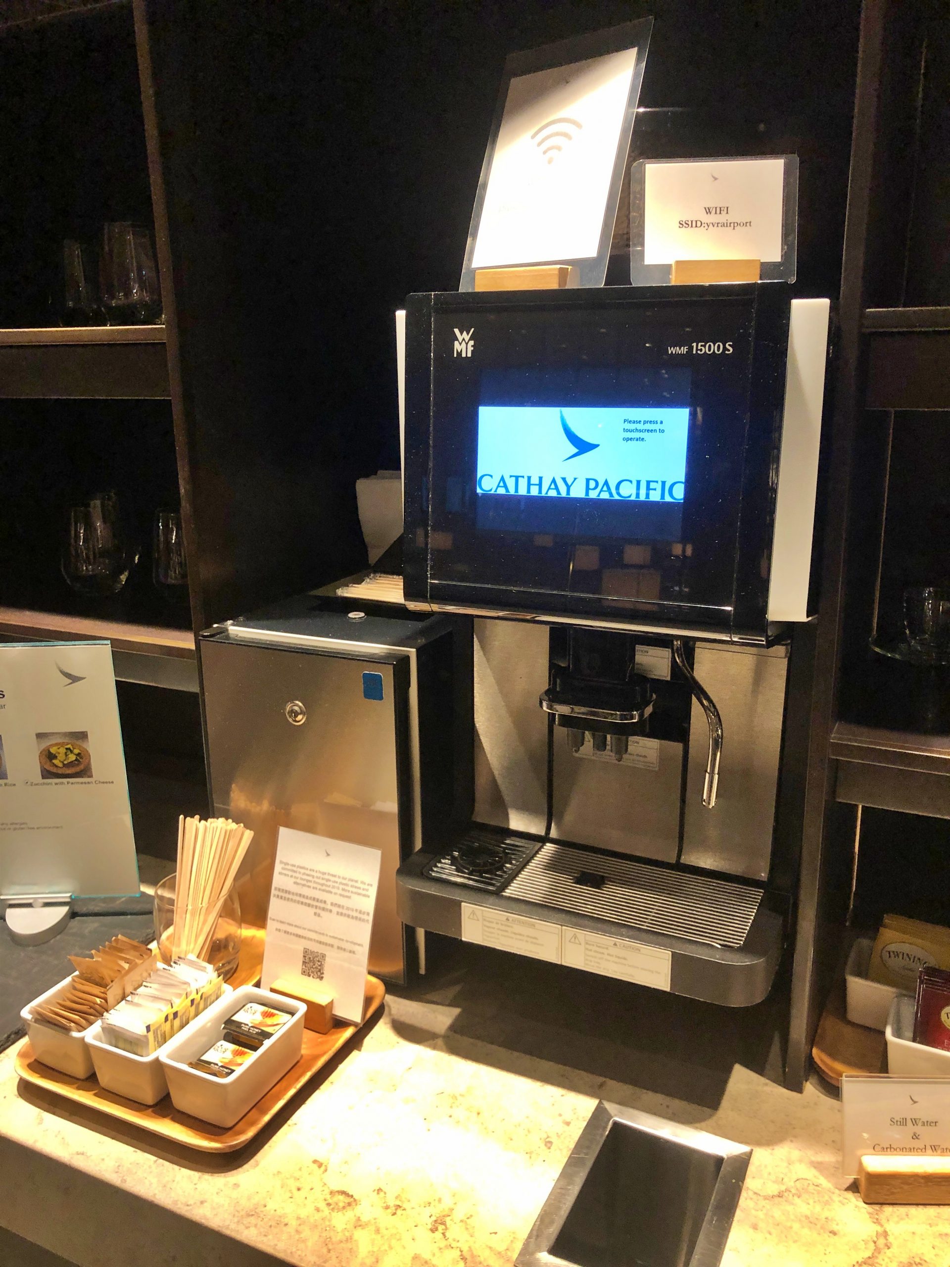 Salonik biznesowy Cathay Pacific Lounge, Vancouver – bufet – ekspres do kawy