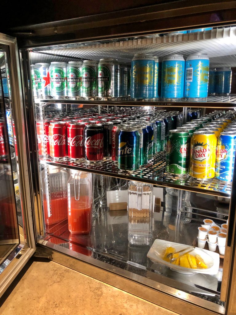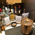 Samoobsługowy bufet znajduje się na lewo od wejścia do saloniku. Pasażerowie mogą skorzystać z oferty napojów (woda, herbata, kawa, napoje gazowane, soki) i alkoholi (wino białe i czerwone, szampan, mocniejsze alkohole) a także przekąsek (wędliny, sery, krakersy, paluszki, ciasta, sałatki, jogurty, mini tortille, gotowe kanapki, hummus).