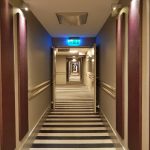 Mimo późnej pory i całkowitych pustek w lobby, przy recepcyjnej ladzie wita nas energiczny Pan Adrian, który w trymiga dokonuje wszelkich niezbędnych formalności związanych z naszym przyjazdem, informuje nas o możliwości zakupu śniadania (60PLN), które serwowane jest w formie bufetu, oraz innych elementach oferty hotelu. Recepcjonista wyjaśnia nam też tajemnicę wysokich cen hoteli w Bydgoszczy. Ze względu na odbywające się manewry wojskowe, w wielu okolicznych hotelach, przez okres dwóch tygodni rozlokowani są żołnierze i inne osoby związane z tym wydarzeniem. W Holiday Inn Bydgoszcz zajmują oni lwią część dostępnych pokoi. Nie wiemy, czy ze względu na duże obłożenie, czy też z powodu naszego statusu Spire Elite w programie IHG Rewards Club, otrzymujemy upgrd do apartamentu na trzecim piętrze. Przed opuszczeniem recepcji zasięgamy jeszcze języka w sprawie obłożenia podczas serwisu śniadaniowego. Na podstawie uzyskanych informacji, połączonych z faktem pełnej niemal zajętości pokoi w hotelu, rezygnujemy z pierwszego posiłku dnia w bufecie Holiday Inn Bydgoszcz. Mamy nadzieję, że uda nam się go spróbować przy okazji następnej wizyty. Pan Adrian przekonuje nas, że w razie zmiany zdania co do śniadania, cały czas możemy niego skorzystać i życzy nam dobrej nocy, wskazując drogę do windy, oraz życząc spokojnej nocy.