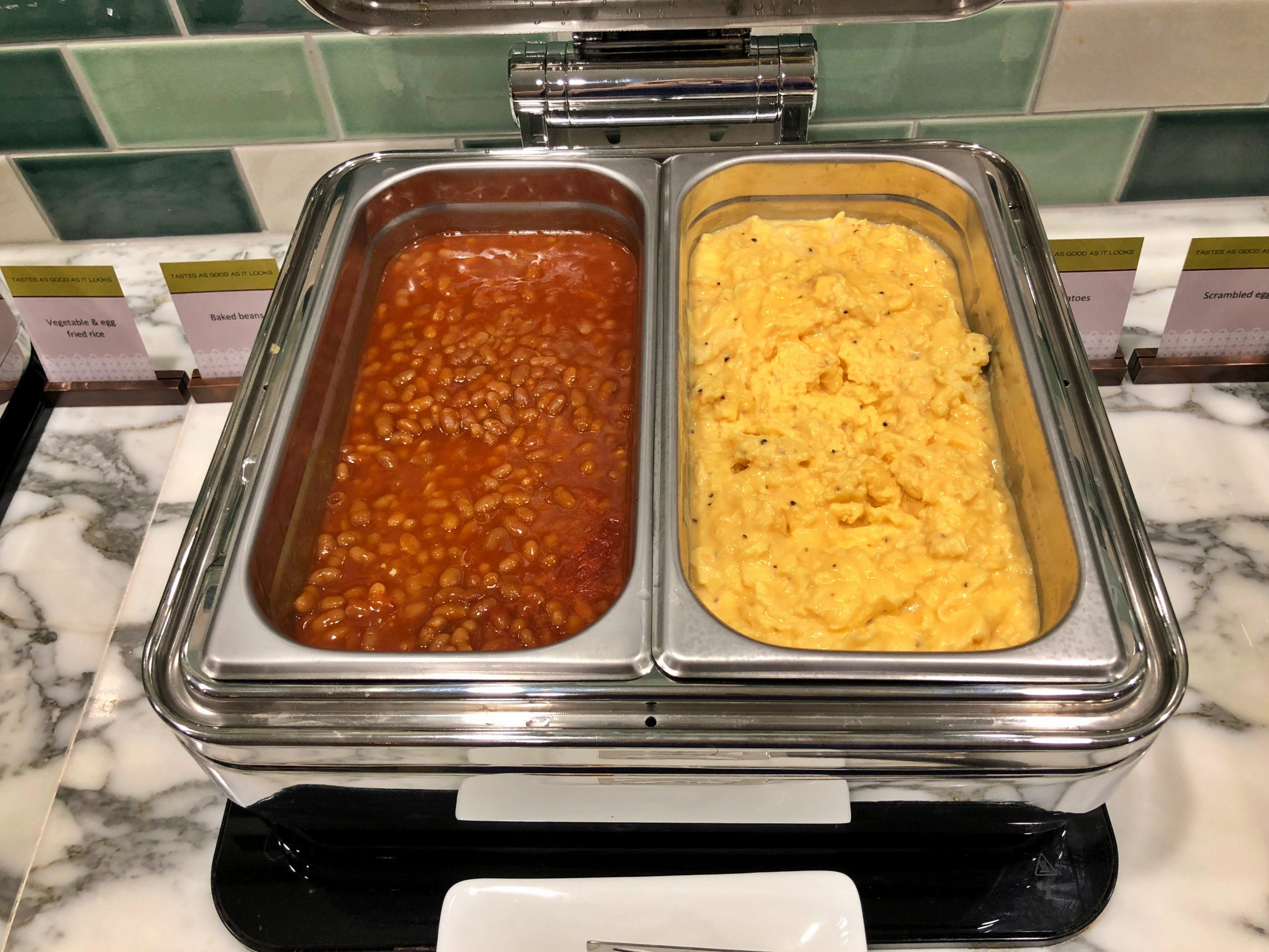 Wybór potraw i dań w czasie śniadania nie był może imponujący, ale każdy chętny znajdzie tu mimo to coś dla siebie – są płatki, są wędliny i sery, są warzywa i owoce. Jest też kilka typowych dań na ciepło – jajecznica, fasolka w sosie pomidorowym, podsmażane grzyby, oczywiście bekon i kiełbaski. Na życzenie kuchnia przygotuje również dania z jajek – te podstawowe jak omlet czy jajka sadzone, albo jajecznica z dodatkami w ramach ceny śniadania, bardziej wymyślne, jak jajka po benedyktyńsku za dodatkową opłatą.