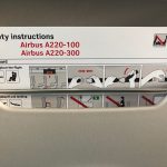 SWISS – Klasa Ekonomiczna w Airbus A220 Warszawa – Zurych – kabina – fotel – instrukcja bezpieczeństwa (safety card)