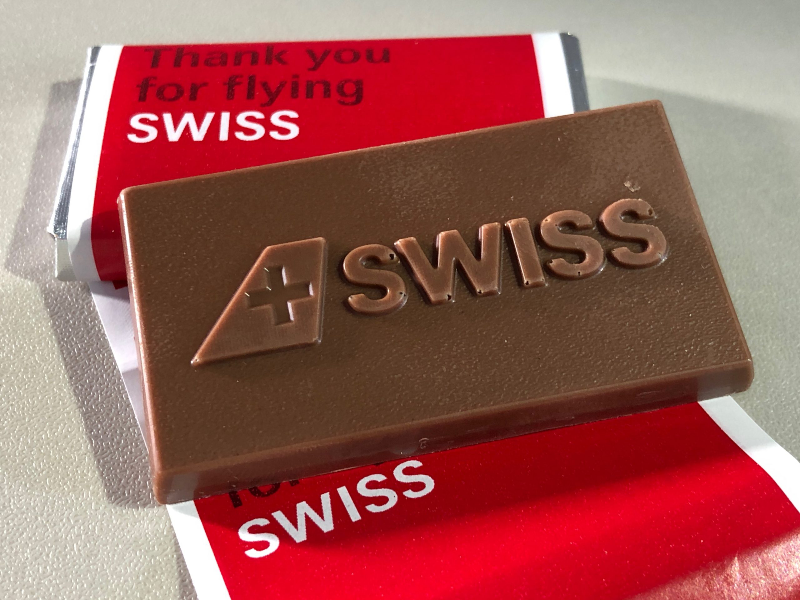 SWISS – Klasa Ekonomiczna w Airbus A220 Warszawa – Zurych – poczęstunek – tradycyjne szwajcarskie czekoladki