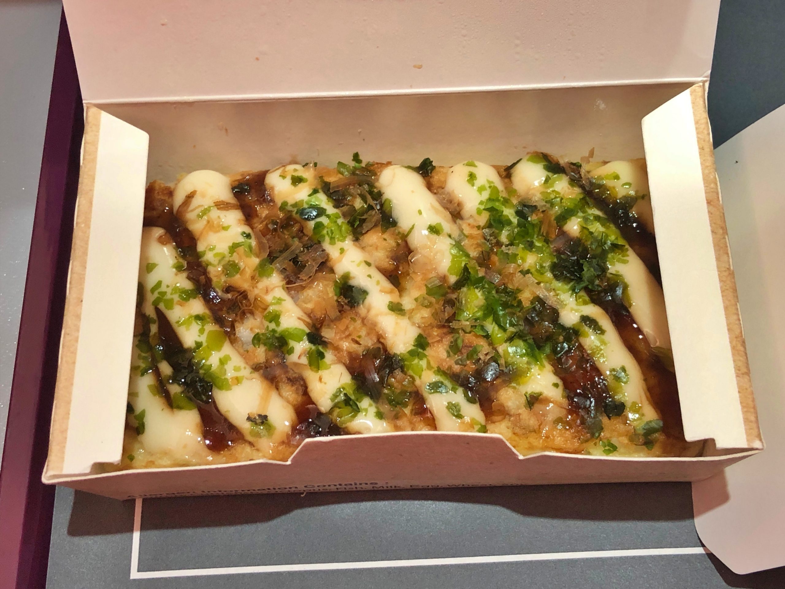 W drogę do Hanoi ruszamy z niewielkim opóźnieniem. Paręnaście minut po starcie załoga rozpoczyna serwis. Każdy pasażer otrzymuje tacę z butelką wody mineralnej oraz dwoma kartonikami z jedzeniem. W jednym znajdujemy danie kuchni japońskiej, czyli okonomiyaki, nazwane przez Thai’a japońską pizzą, a w drugim mały deser – ciasto w stylu naszego sernika. Dodatkowo załoga proponuje napoje ciepłe (kawę i herbatę) oraz zimne (soki, napoje gazowane).
