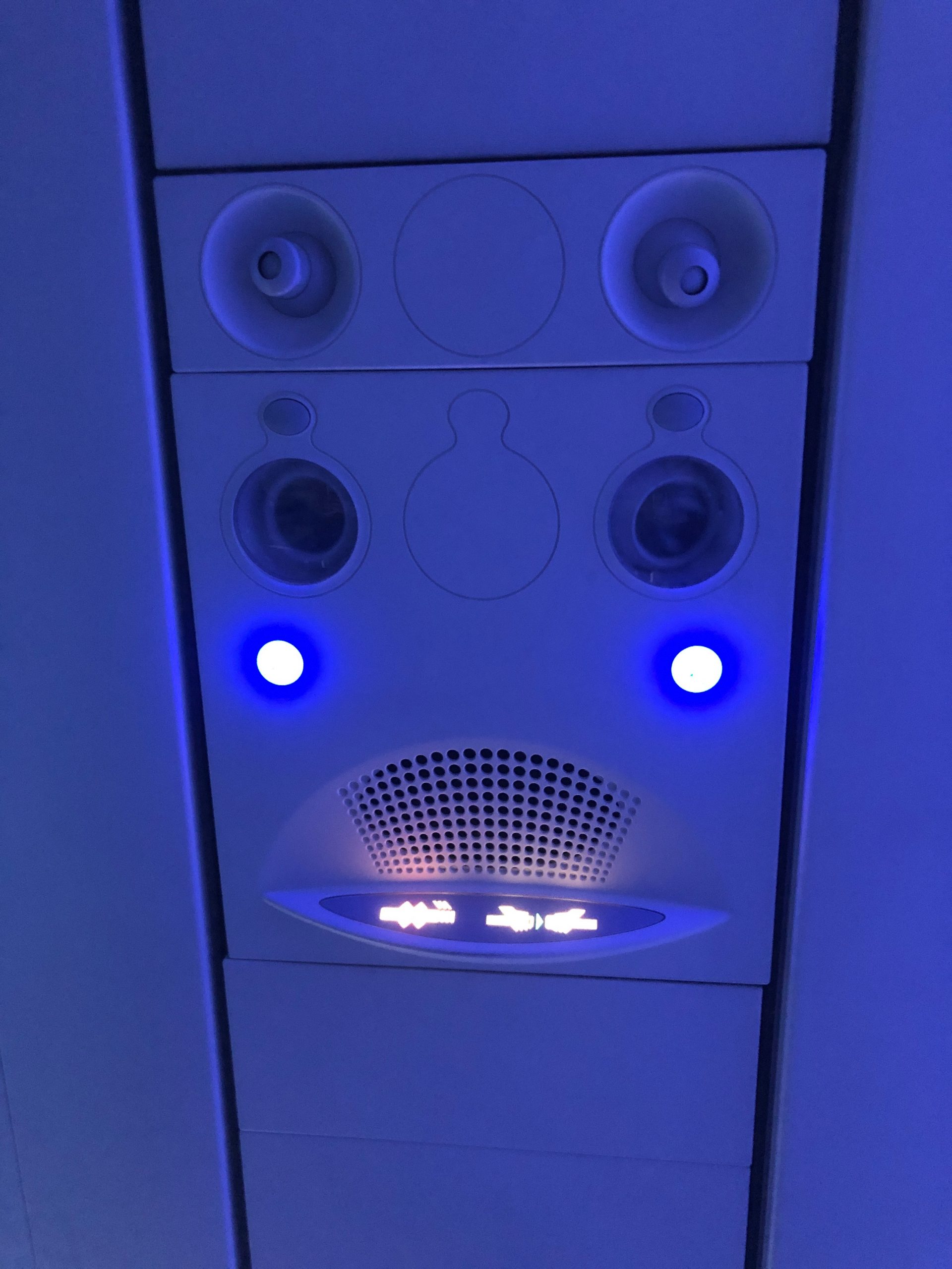 Po zakończeniu serwisu, kabina została zaciemniona, a większość pasażerów zapadła w sen.