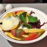 Propozycja wegetariańska to zapiekanka z bakłażana z serem. Z wyglądu danie to budziło nasze wątpliwości, ale po spróbowaniu, zostały one całkowicie rozwiane – dobrze doprawiony, aromatyczny bakłażan okazał się być bardzo smaczny, a jego struktura została zachowana, co uchroniło nas przed spożywaniem rozgotowanej papki.