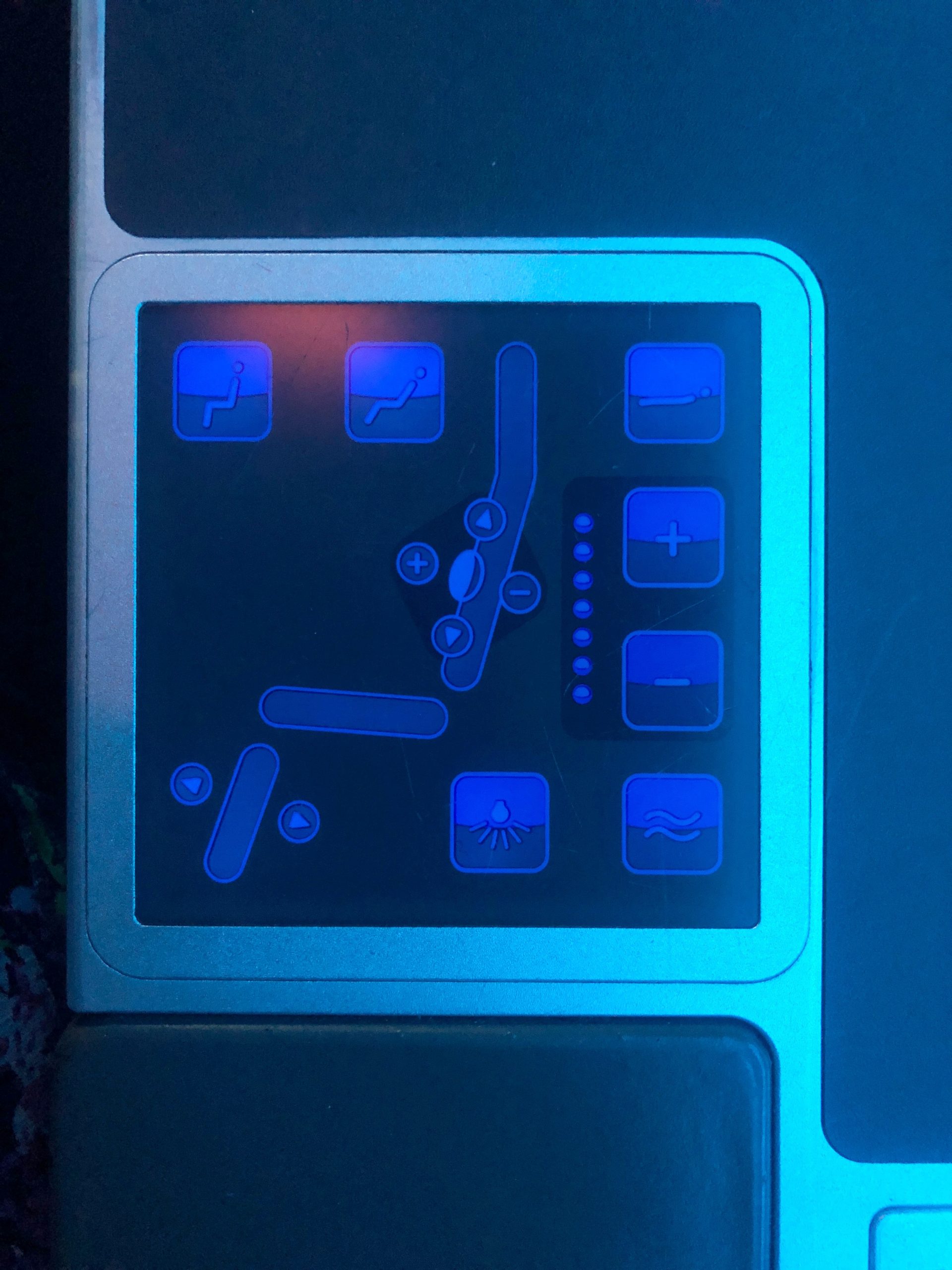 Air Astana – Klasa Biznes w Boeing B767 Almaty – Bangkok – sterowanie fotelem w klasie biznes