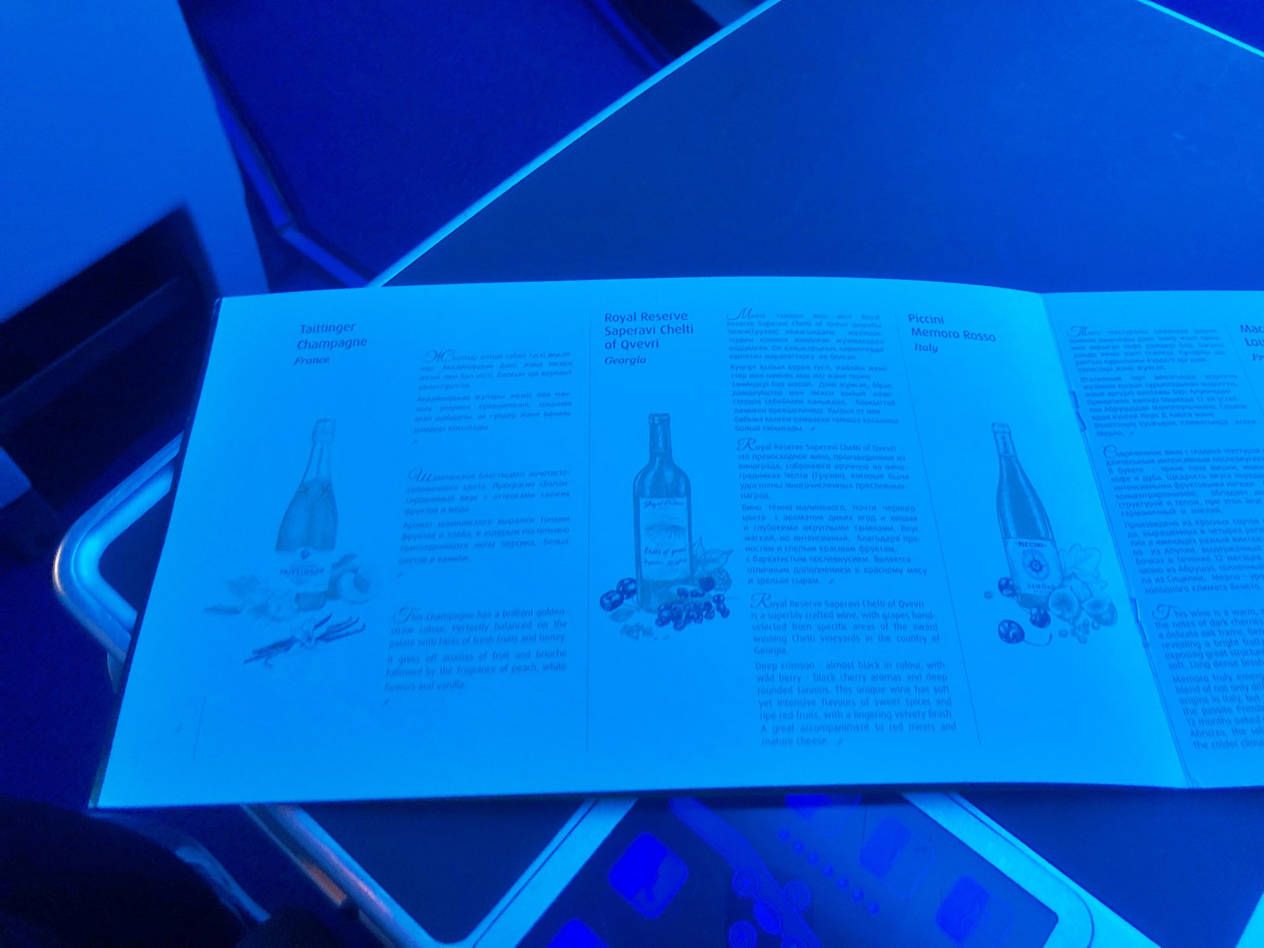 Air Astana – Klasa Biznes w Boeing B767 Almaty – Bangkok – menu i karta win