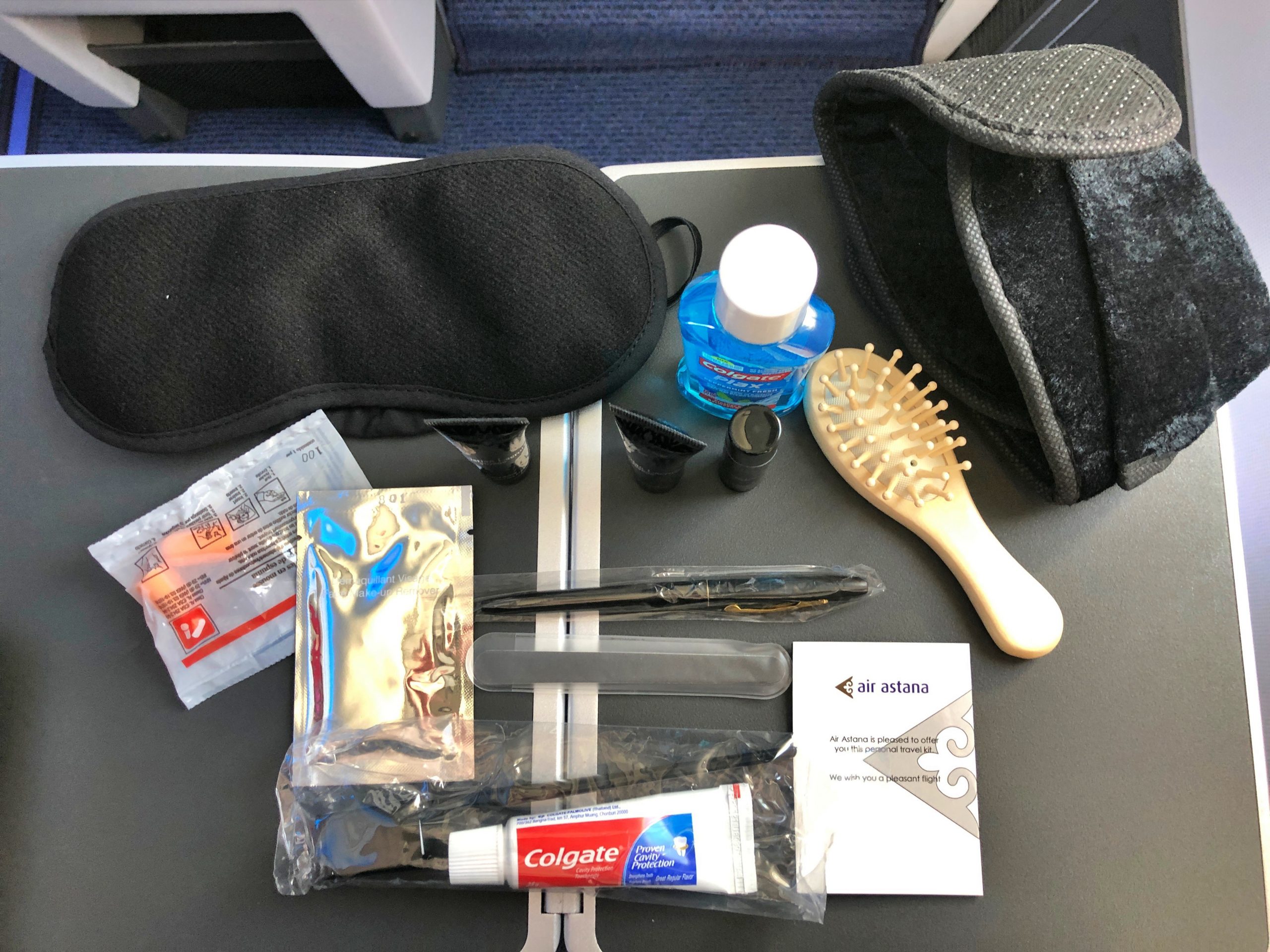 Air Astana – Klasa Biznes w Boeing B767 Bangkok – Almaty – kosmetyczka podróżna (amenity kit) w klasie ekonomicznej