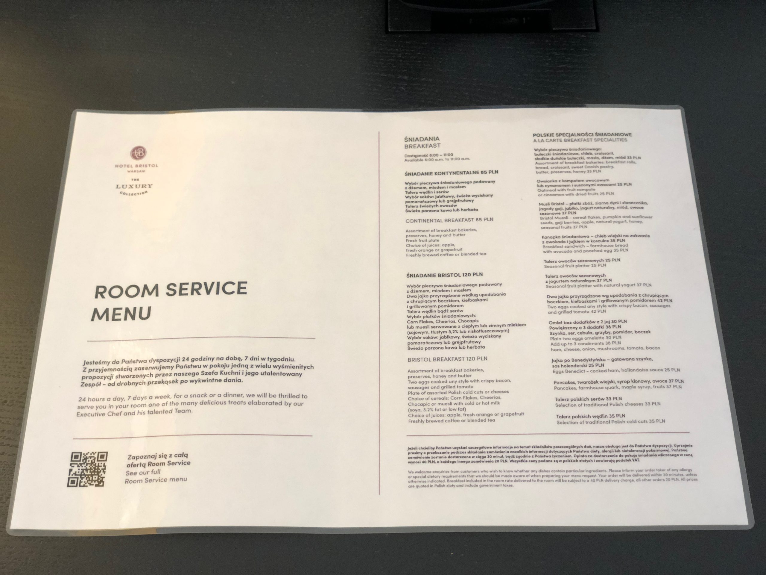 Hotel Bristol, a Luxury Collection Hotel, Warsaw – junior suite 511 – menu room service