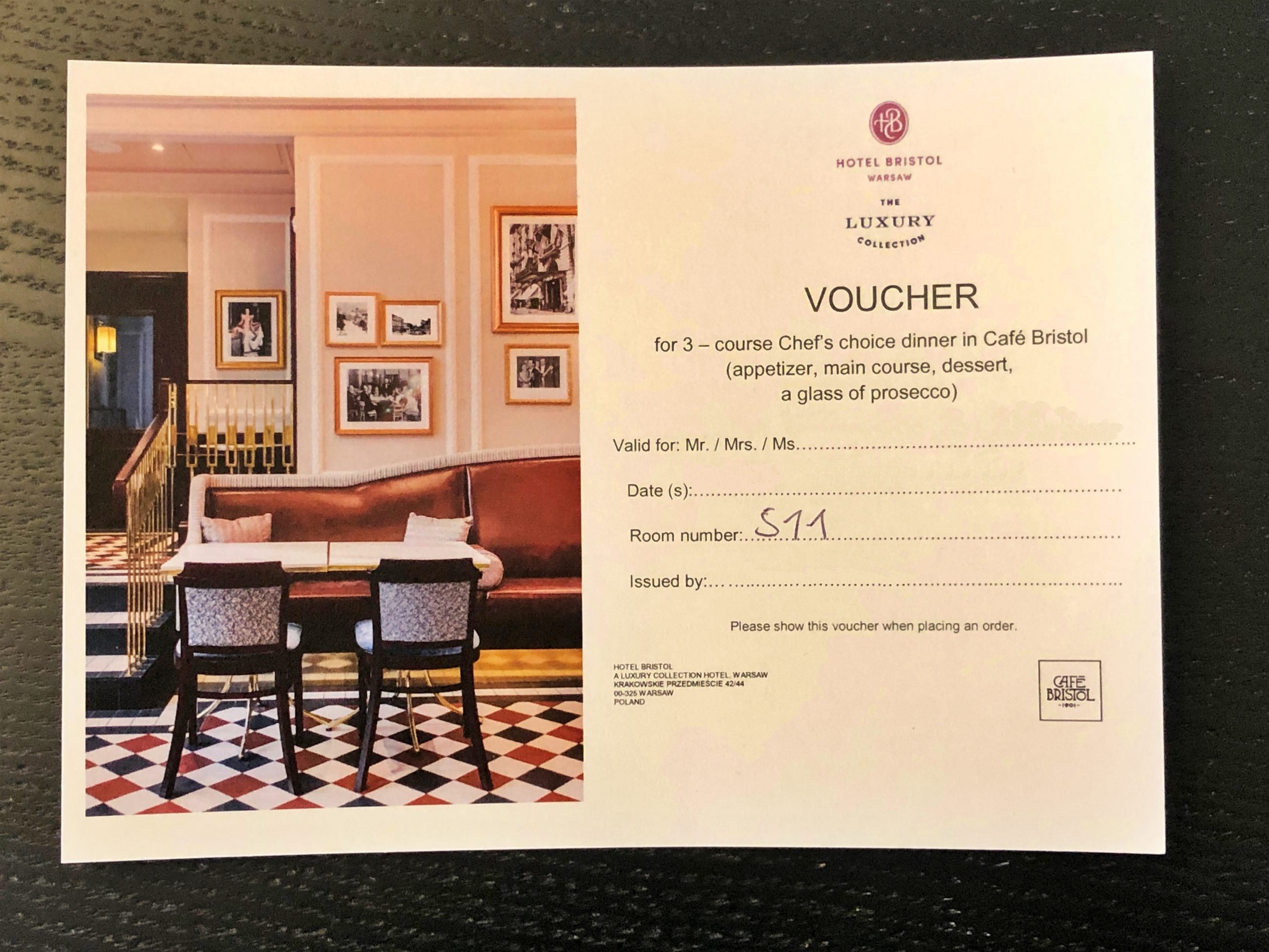 Hotel Bristol, a Luxury Collection Hotel, Warsaw – voucher – revers