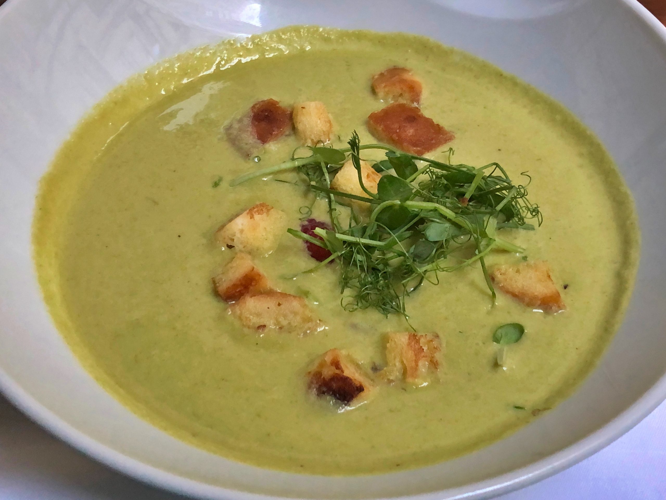 Hotel Bristol, a Luxury Collection Hotel, Warsaw – Cafe Bristol – zupa krem ze szparagów z sałatką z kopru włoskiego i malinami, grzanki