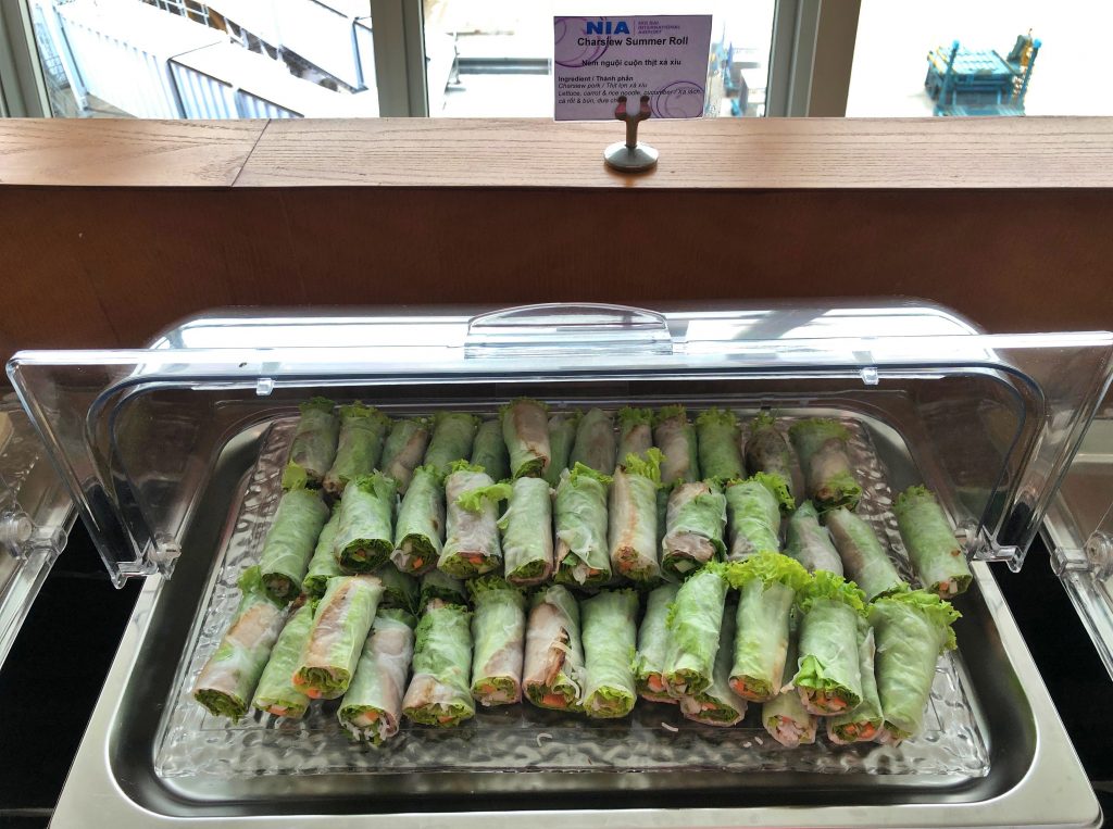 Salonik biznesowy NIA Business Lounge, Hanoi – bufet – sajgonki z wieprzowiną char siu