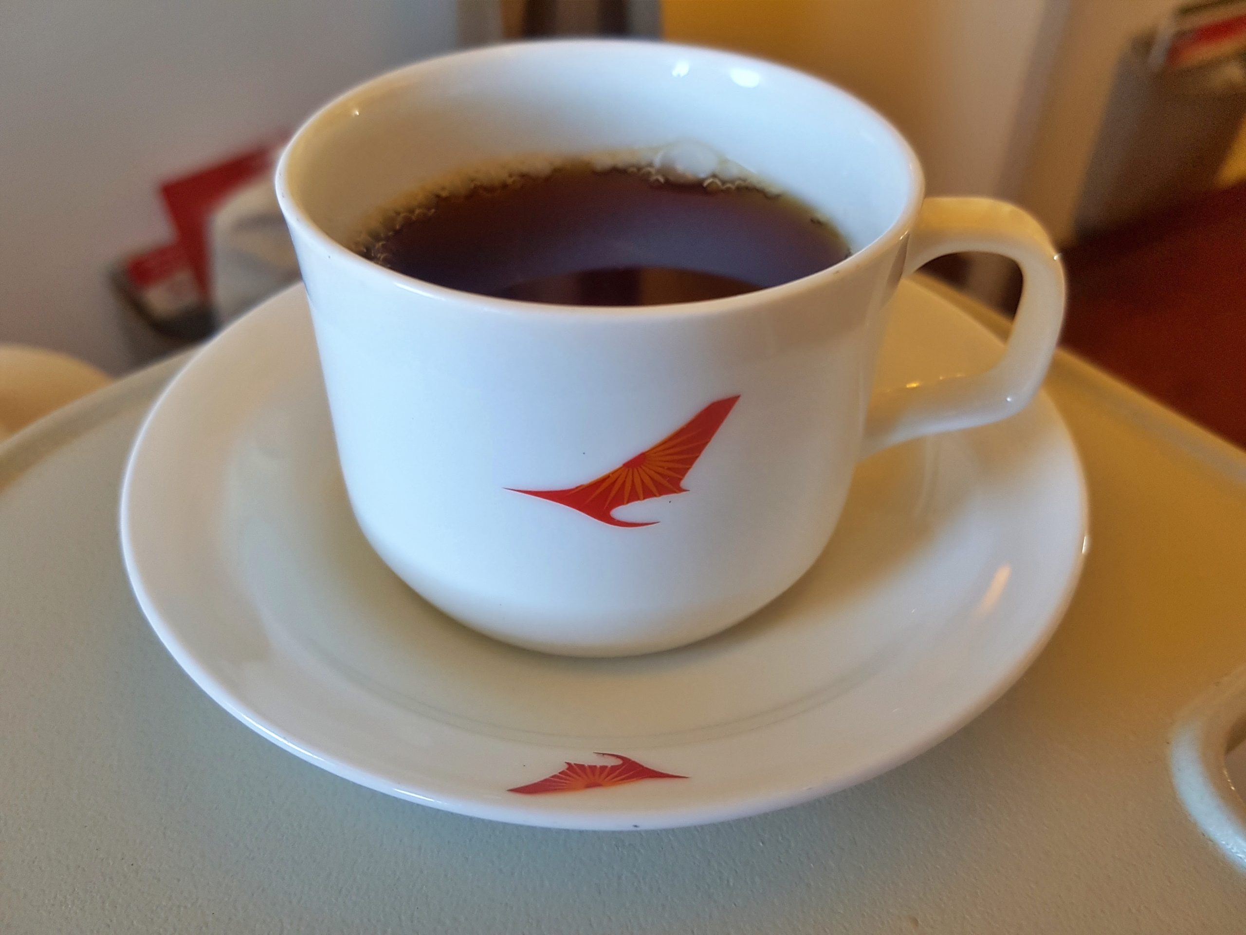Jako, że nasz lot odbywał się w godzinach popołudniowych, zaserwowano nam posiłek w postaci lunchu. Wyboru nie było – co zdziwiło nas bardzo, gdyż nawet w tanich indyjskich liniach, serwujących posiłki, zawsze oferowane były przynajmniej dwie wersje jedzenia – „vege” i „non-vege”. W przypadku lotu krajowego Air India w klasie biznes, takiego wyboru nie było – wszyscy pasażerowie w kabinie otrzymali ten sam zestaw, podany niemal bez słowa, a już na pewno bez uśmiechu.