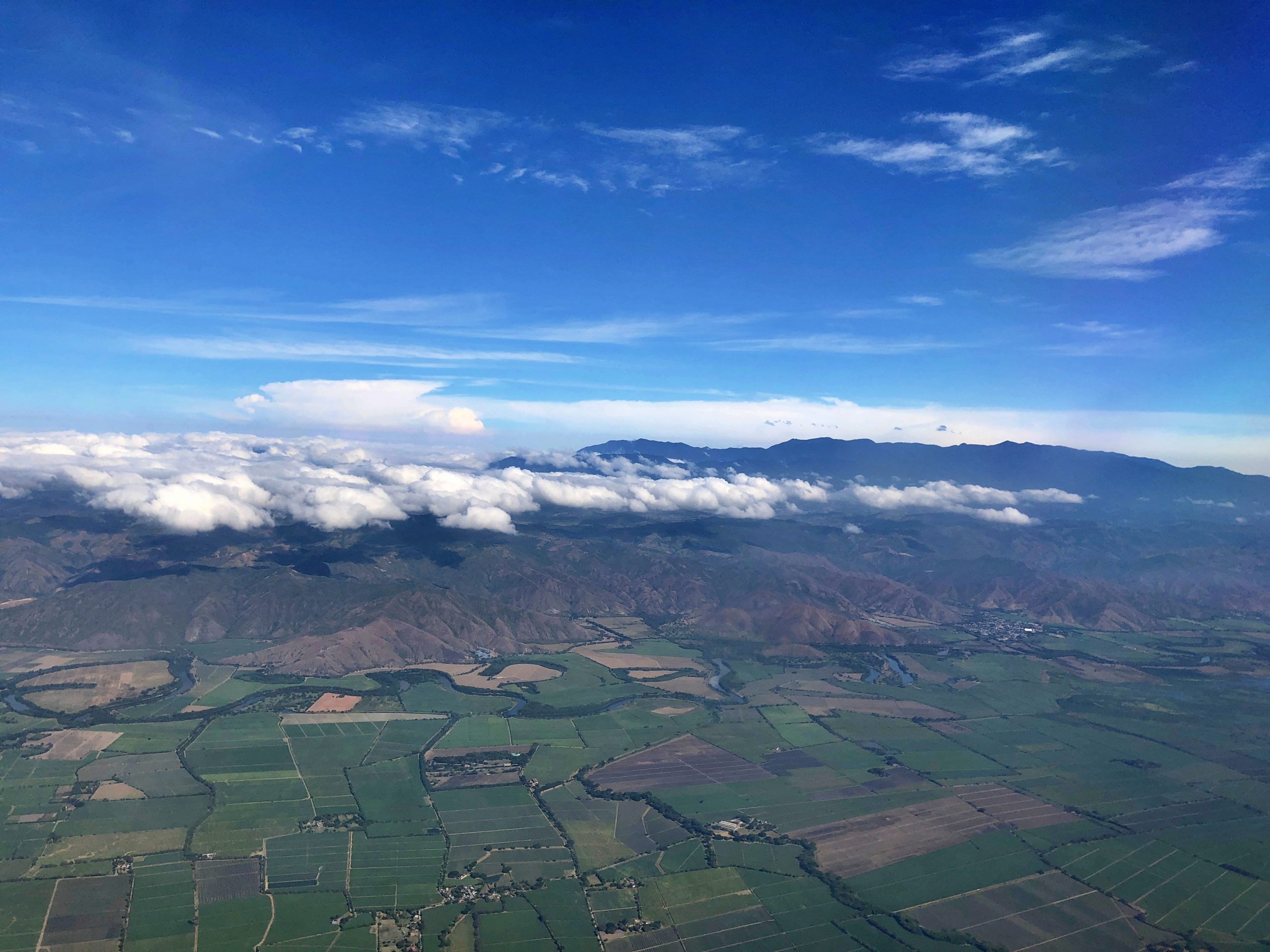 Start do Medellin, podobnie jak boarding, opóźniony jest o kwadrans, ale tym razem nie mamy już obaw, że nie zdążymy na kolejne połączenie. Serwis w trakcie lotu jest identyczny jak na poprzednim rejsie – kawa, sok i woda, przynoszone indywidualnie z galley, zgodnie z zamówieniem. Po szybkiej kawie przyklejamy wzrok do okien, gdyż widoki po trasie są bajeczne.