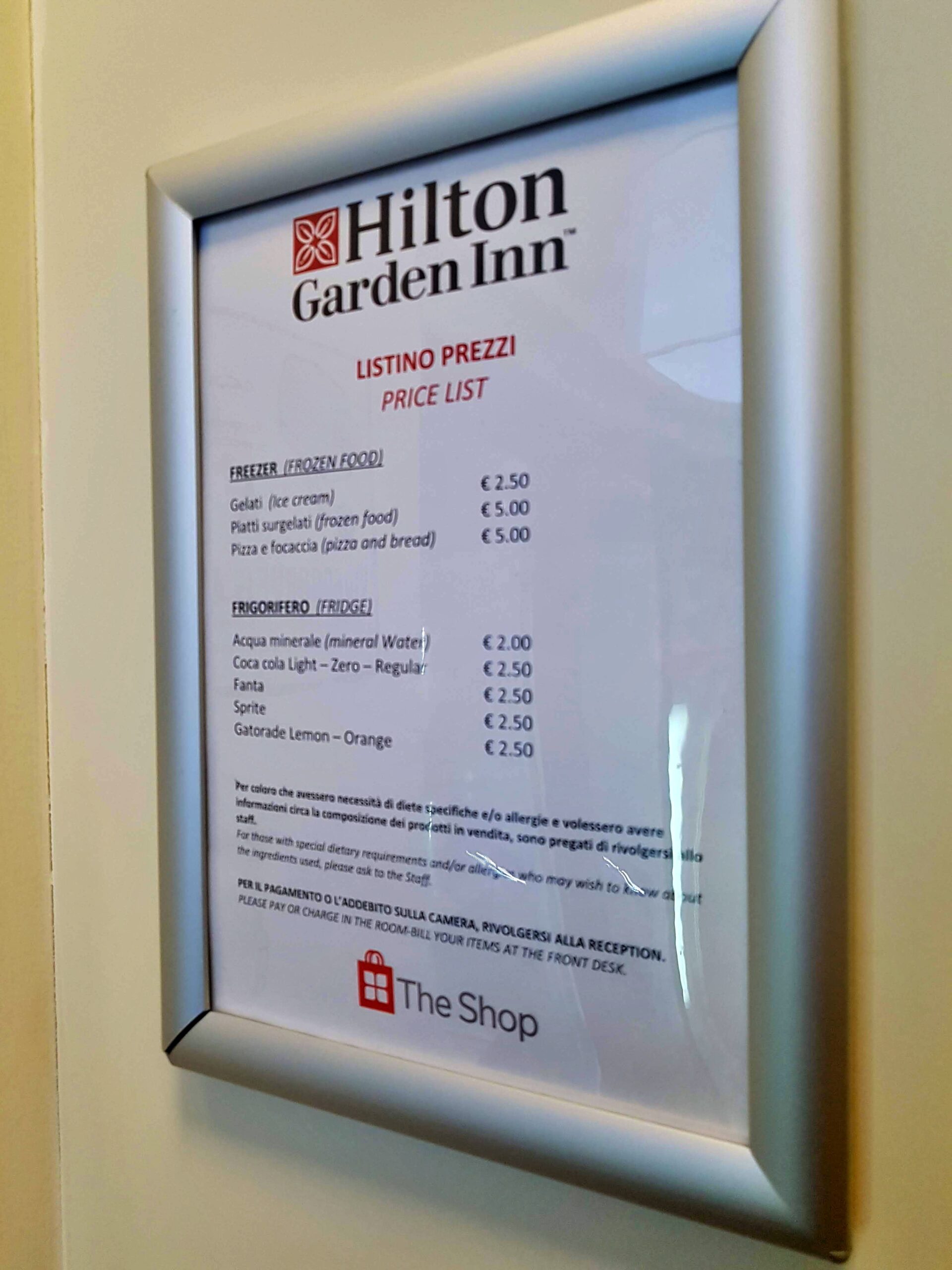 Hilton Honors – Hilton Garden Inn Florence Novoli – hotelowy sklepik Pavilion Pantry- cennik