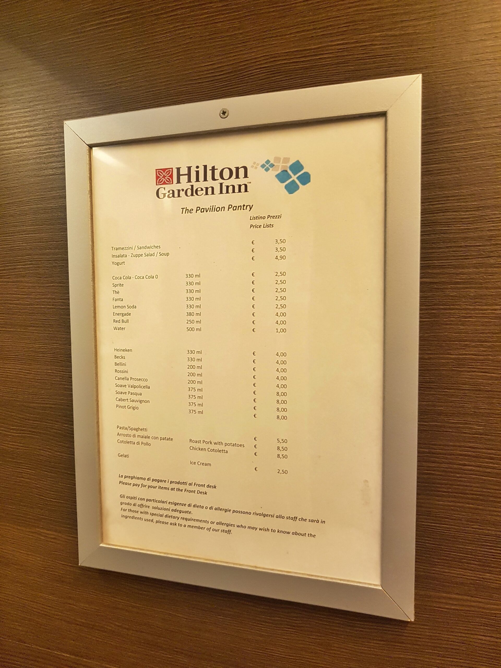 Hilton Honors – Hilton Garden Inn Venice Mestre San Giuliano – Pavilion Pantry – cennik