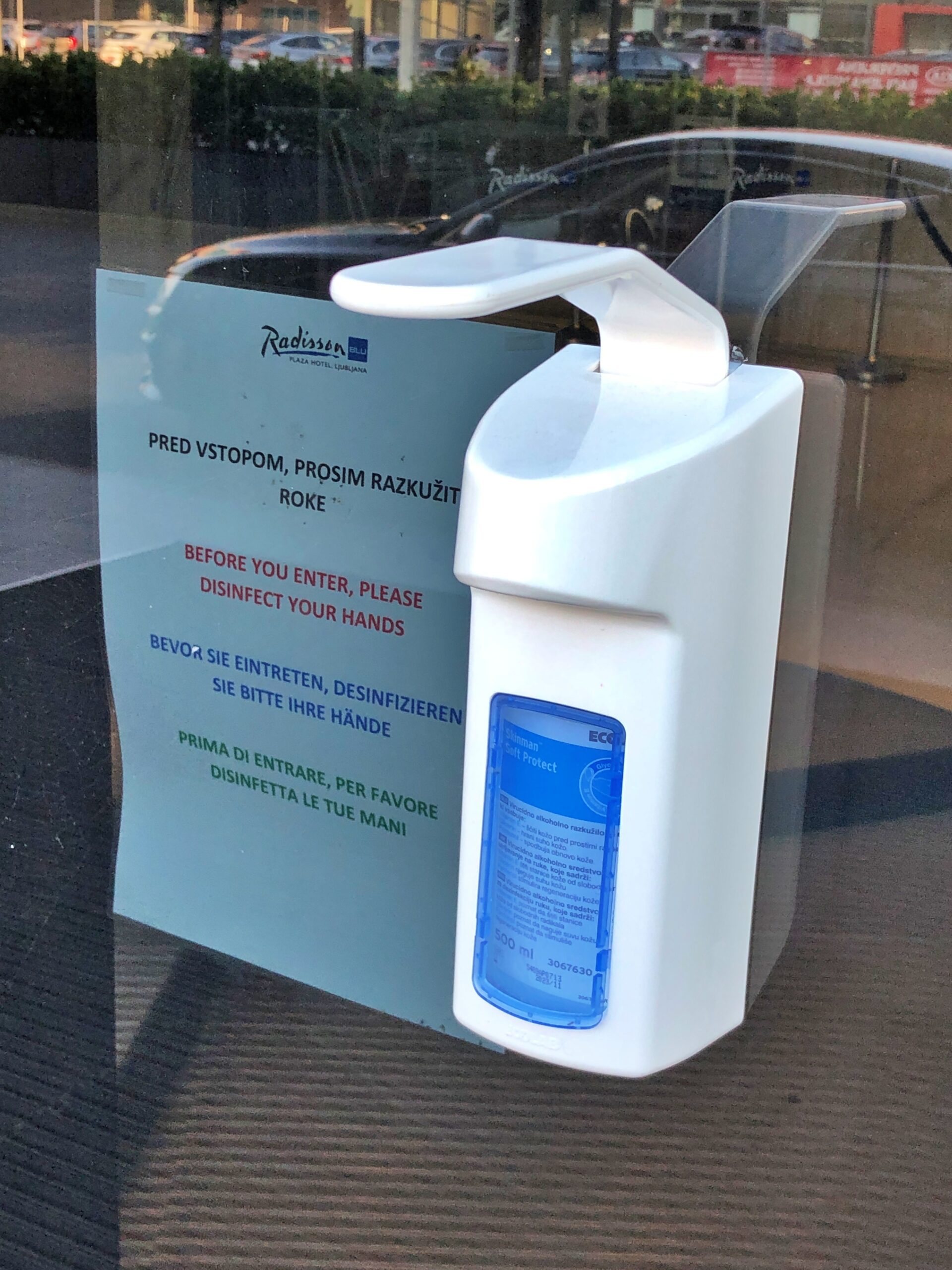 Radisson Blu Plaza Hotel Ljubljana – płyn do dezynfekcji przed wejściem