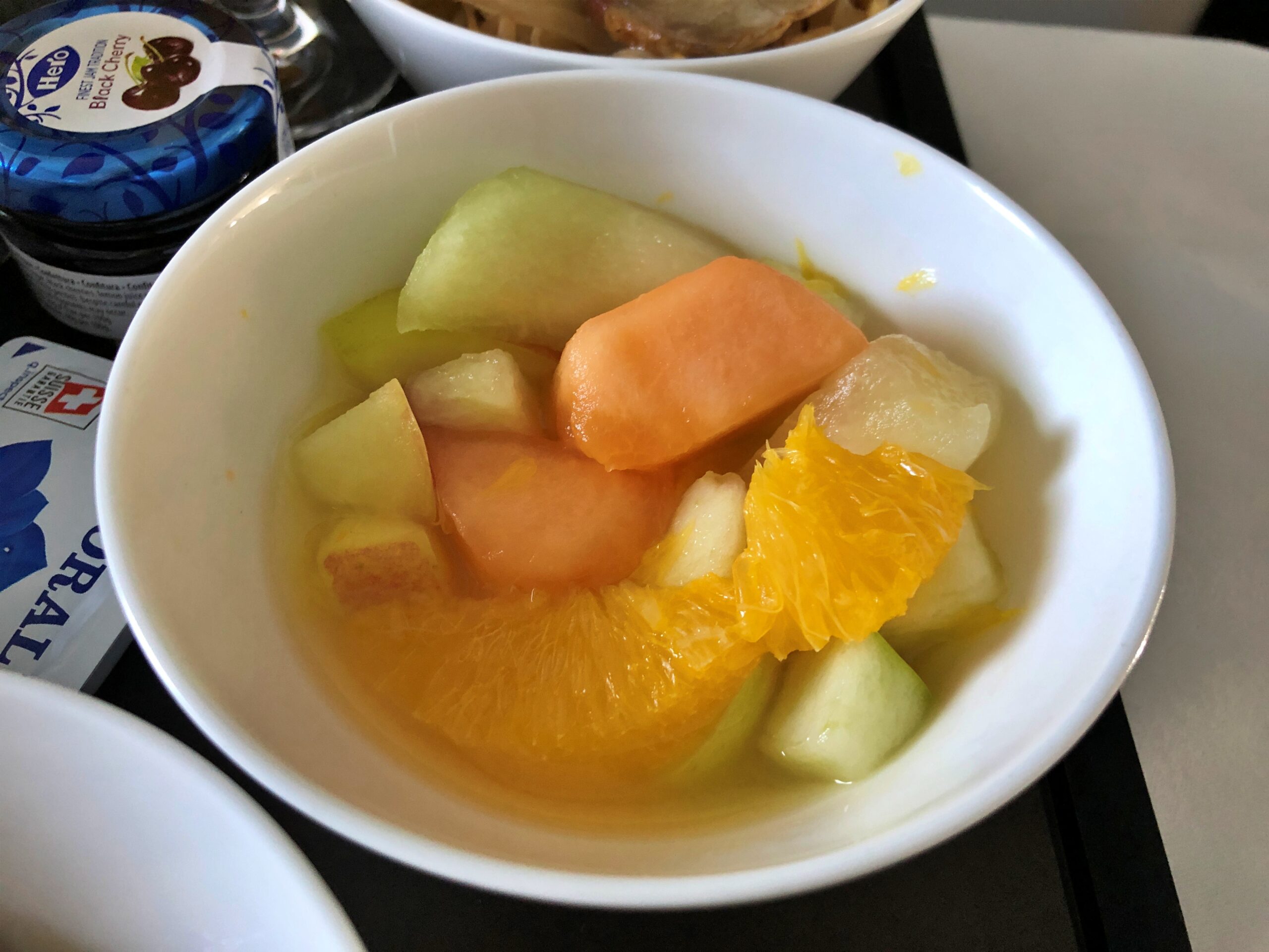 SWISS – Klasa Biznes w Boeing B777 Zurych – Singapur – śniadanie – owoce