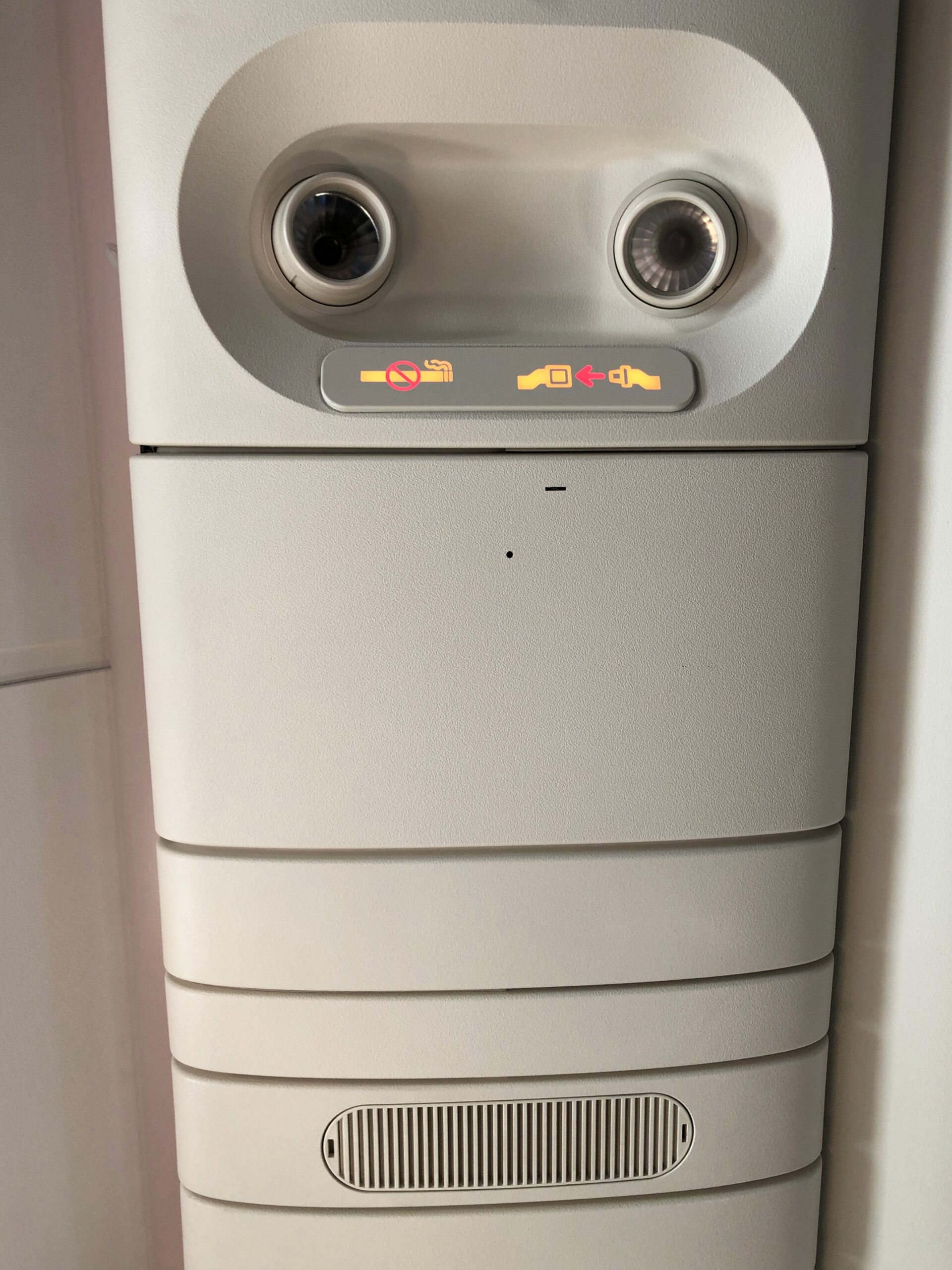 SWISS – Klasa Biznes w Boeing B777 Zurych – Singapur – fotel 4A – oświetlenie pod sufitem