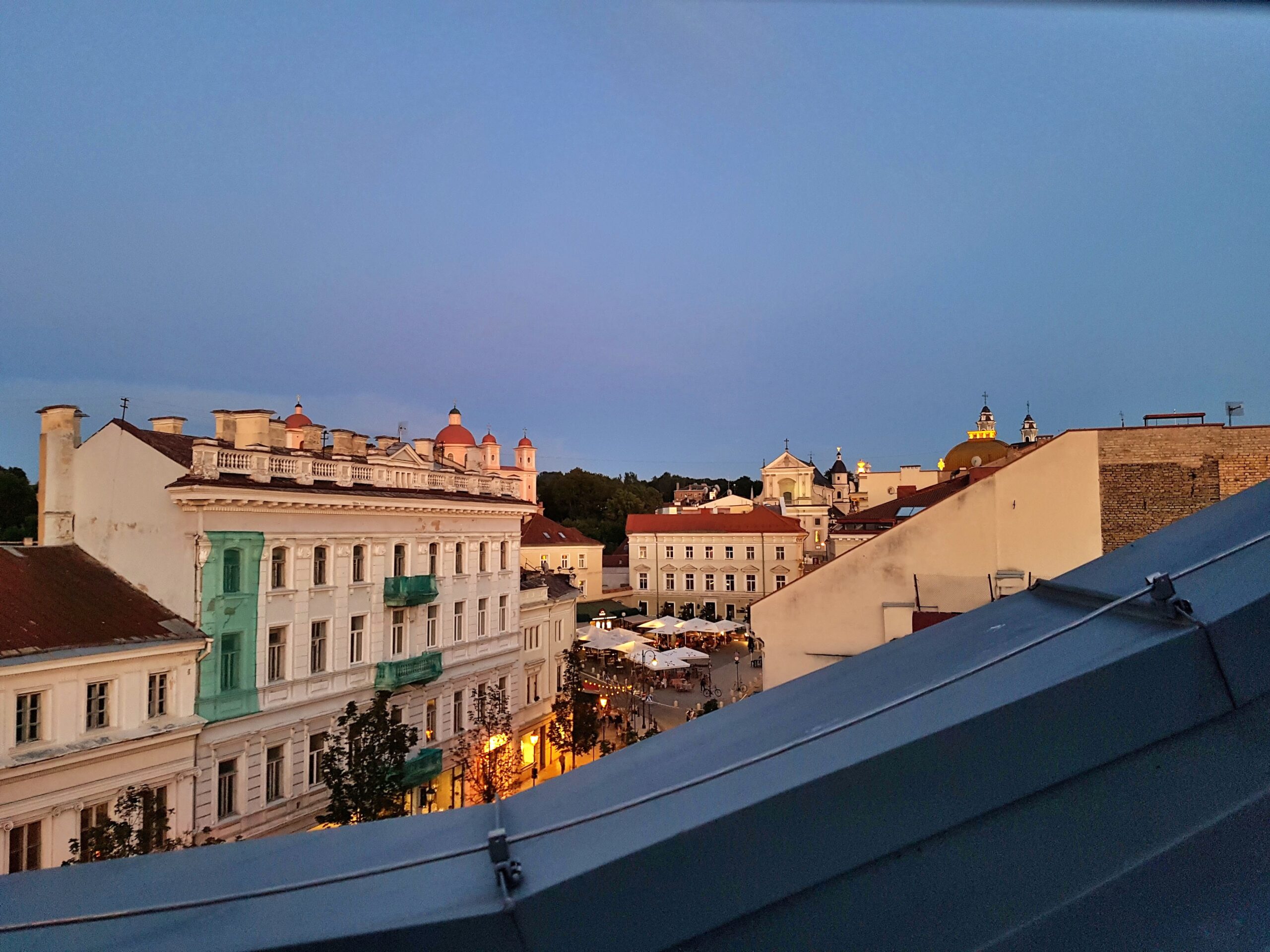 Radisson Blu Royal Astorija Hotel, Vilnius – apartament 502 – patio – widok zza żaluzji (wieczór)