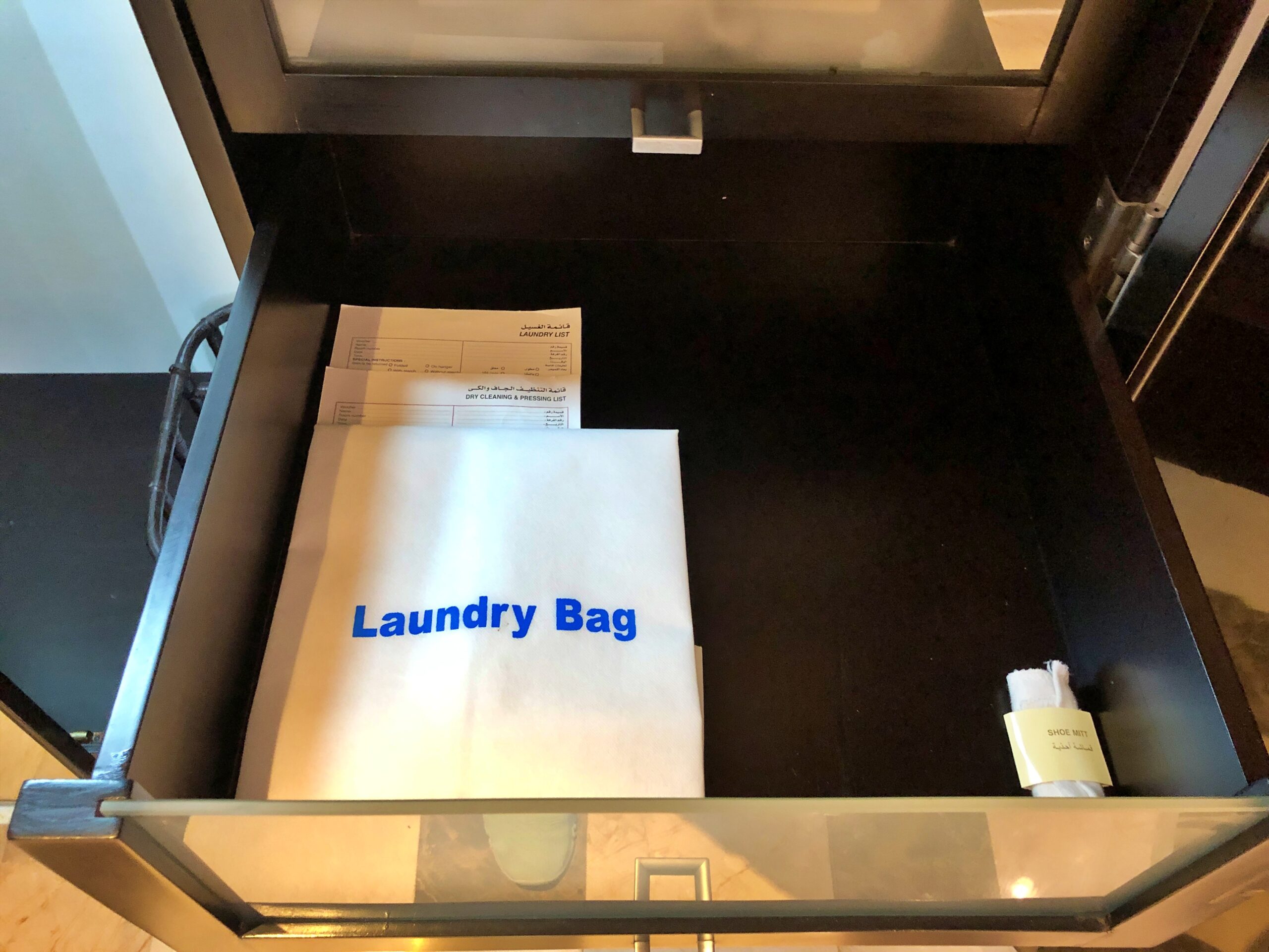 Waldorf Astoria Heliopolis Towers Hotel, Kair – 330 apartament deluxe z łóżkiem typu king – garderoba – worek na pranie