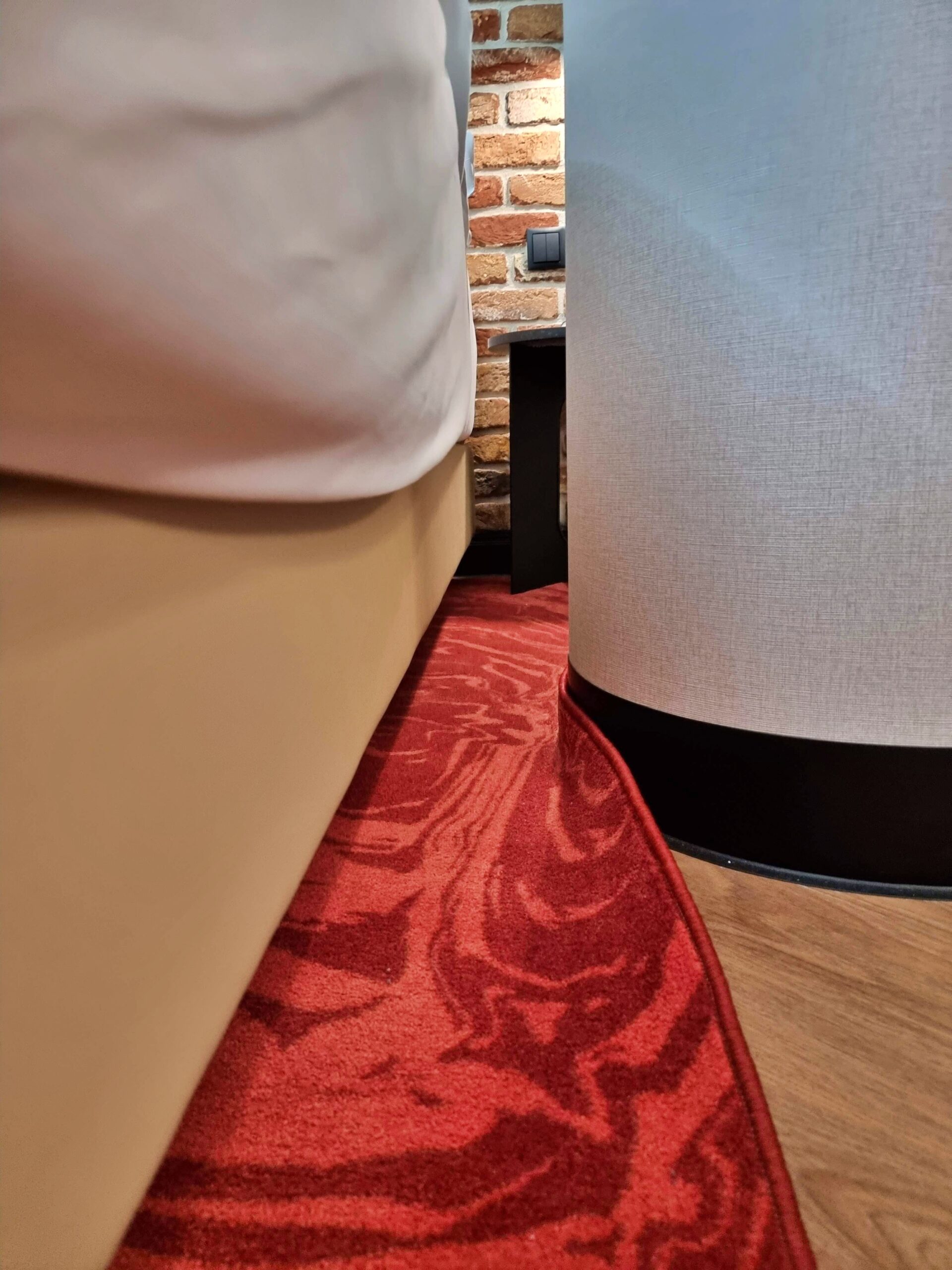 Radisson RED Gdańsk – 114 pokój standardowy – łóżko ustawione obok filaru, brak miejsca nawet dla dywanu