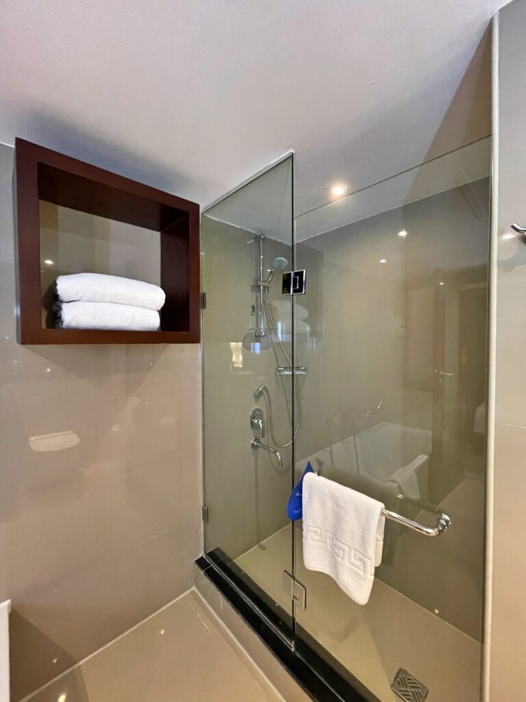 O ile pokój, w którym nocowaliśmy za pierwszym razem nie miał jakiś znaczących wad, o tyle Diplomatic Suite, który nam przydzielono kolejnym razem prosił się o remont w trybie pilnym. Od czego by tu zacząć wymieniać – może od początku, czyli od popsutych zawiasów w drzwiach, przez brudne włączniki świateł, pokrętła bardzo głośno działającej klimatyzacji, na których trudno dostrzec jakiekolwiek opisy, a także niespasowaną z blatem szafkę w toalecie przy pokoju gościnnym.
