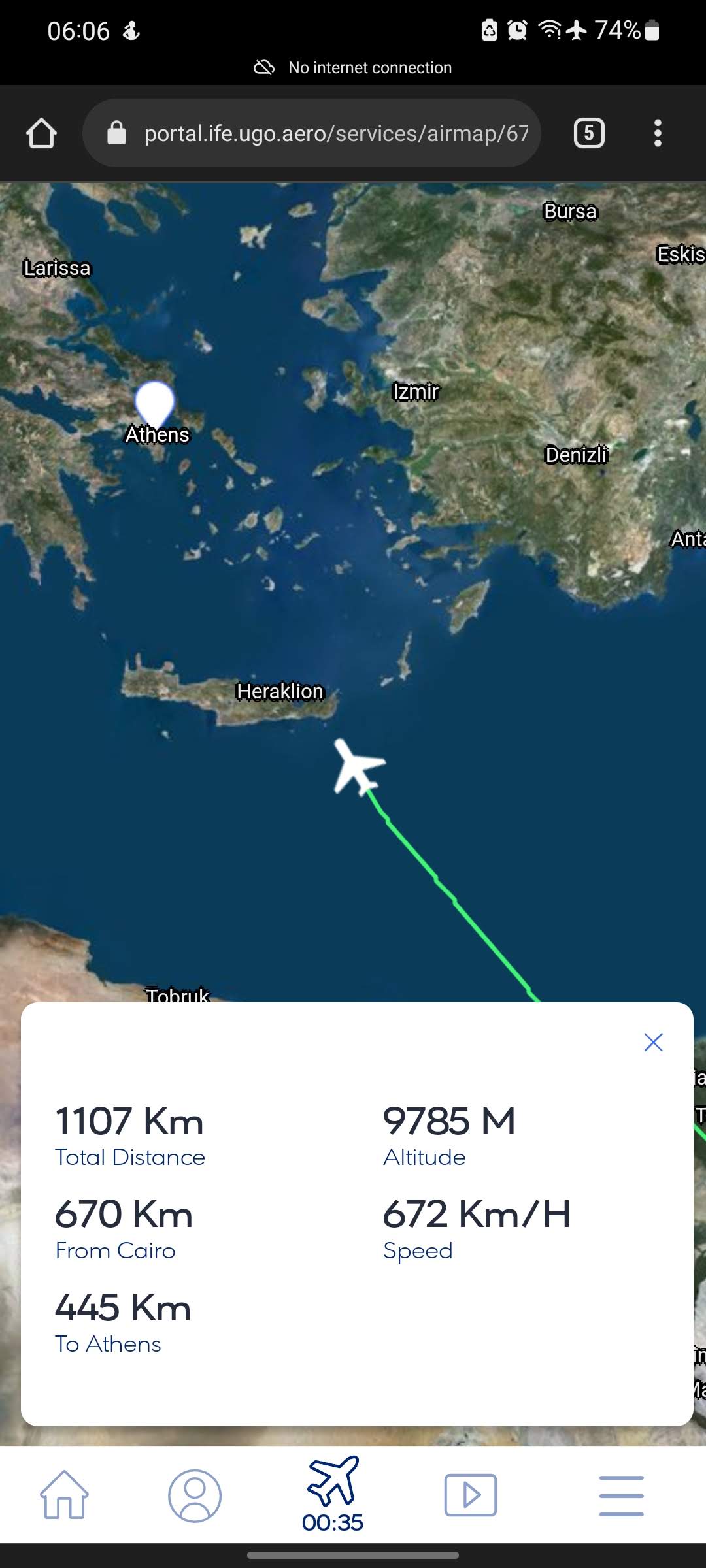 AEGEAN – Klasa Biznes w Airbus A321neo Kair – Ateny – system rozrywki pokładowej (IFE) via WiFi – mapa