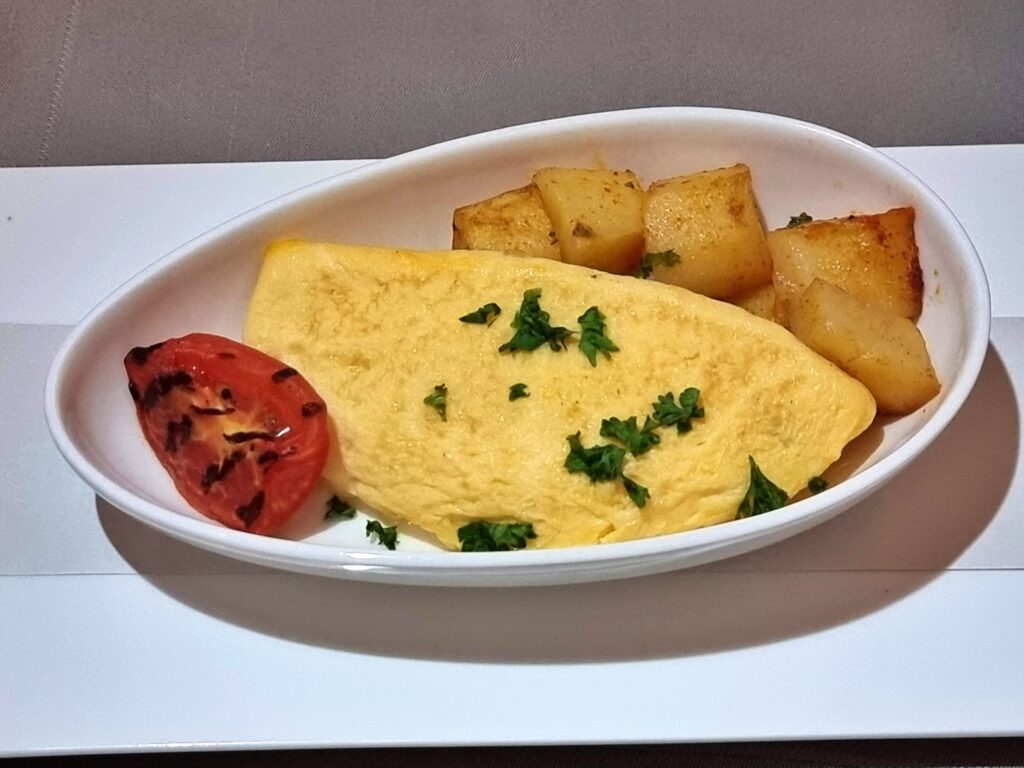 Z lekką dozą nieśmiałości wybieramy omlet, który okazuje się być całkiem smaczny – wilgotny i nafaszerowany dużą ilością dodatków.