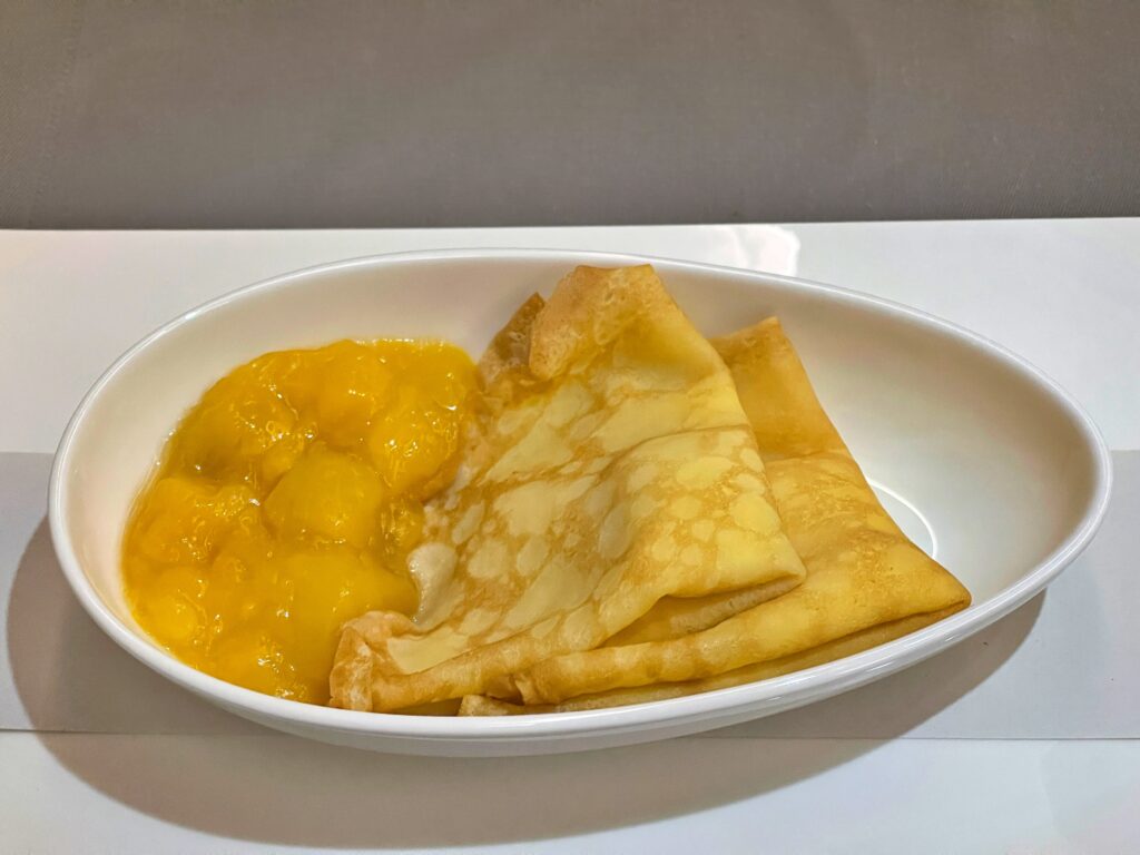 Nasz drugi wybór jest jeszcze lepszy – tradycyjne naleśniki (nie pankejki) z waniliowym nadzieniem są wybitne – ciasto jest elastyczne, nie gumowe ani suche.