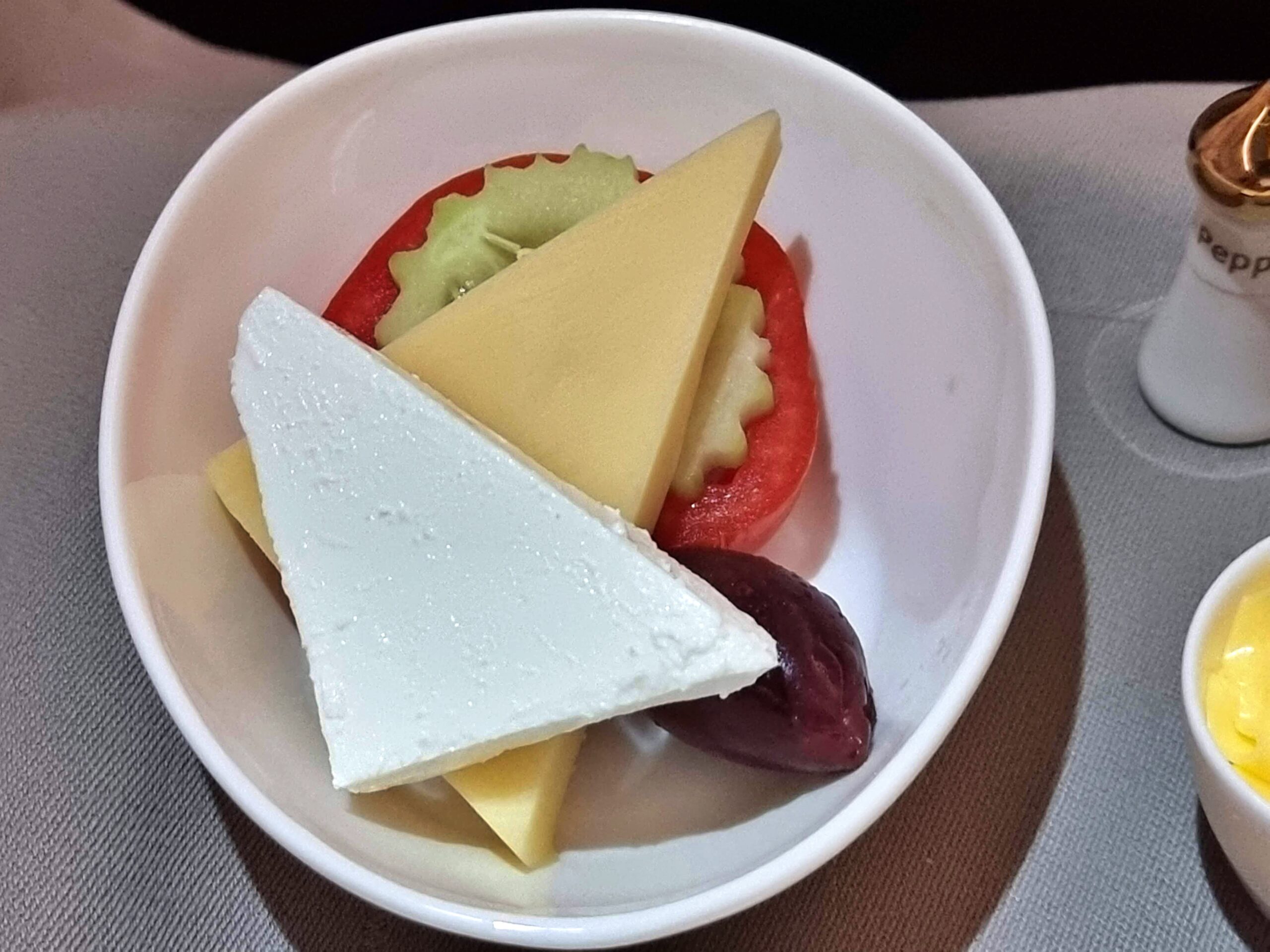 Turkish Airlines – Klasa Biznes w Airbus A330 Bangkok – Stambuł – śniadanie – sery, warzywa