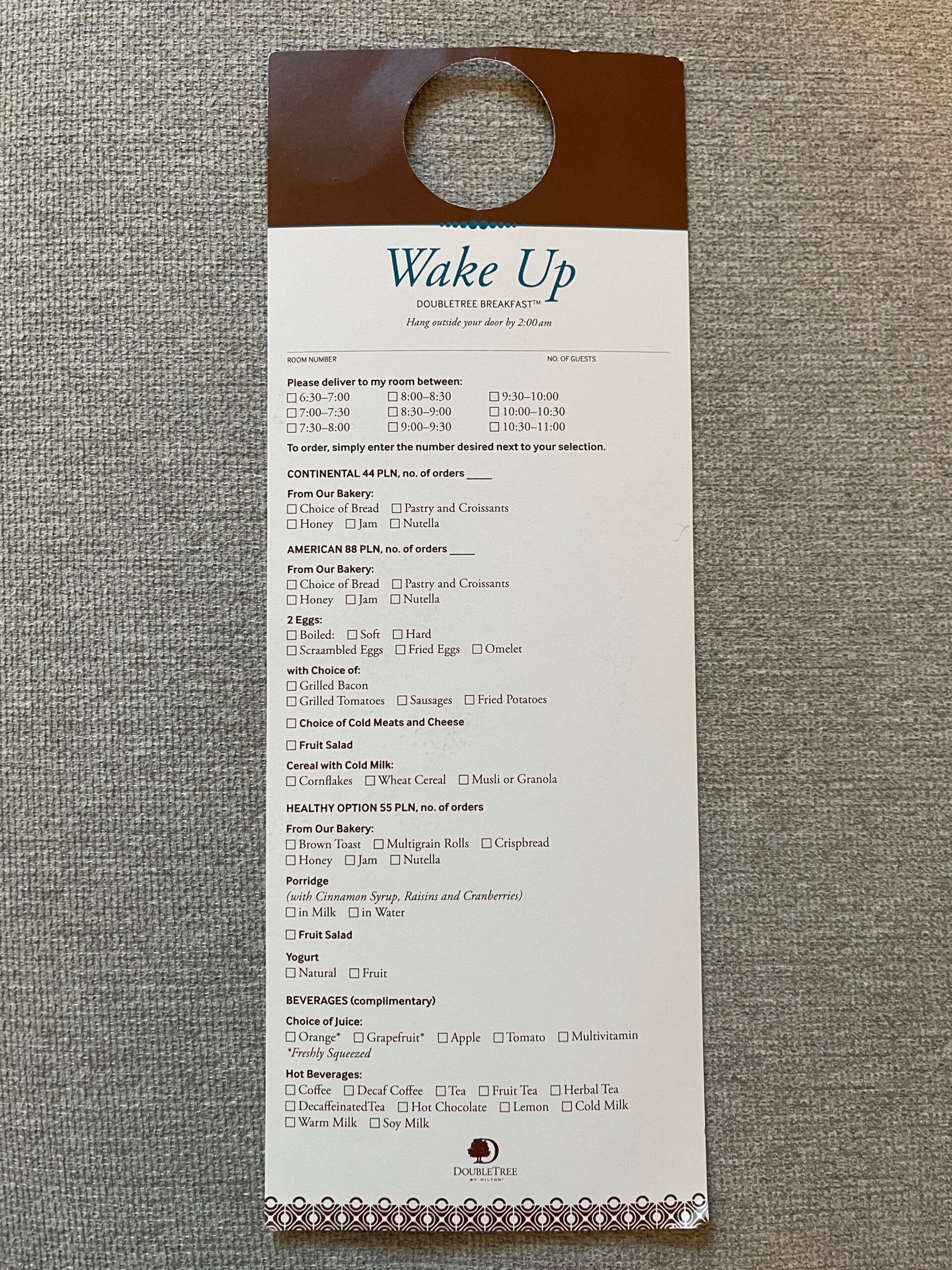DoubleTree by Hilton Hotel Warsaw – 4048 king deluxe room – pokój – breakfast order