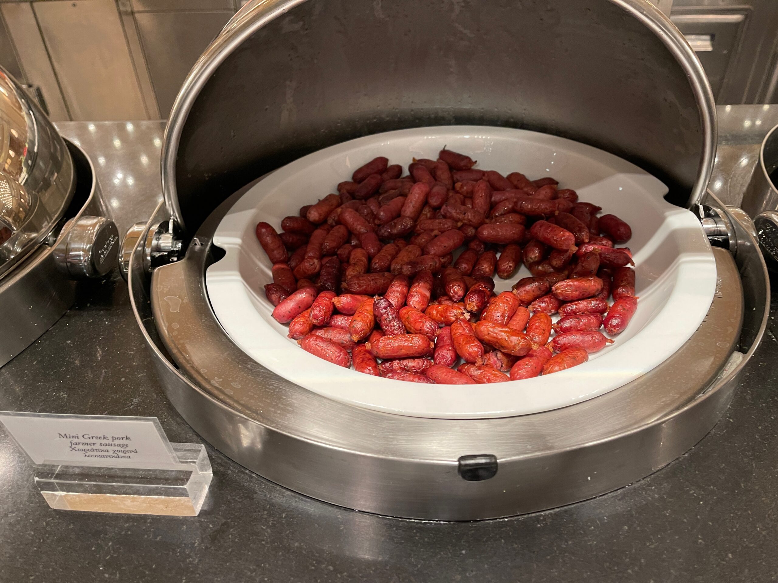 InterContinental Athenaeum Athens – restauracja Cafezoe – śniadanie – bufet – greckie, wieprzowe mini kiełbaski farmerskie