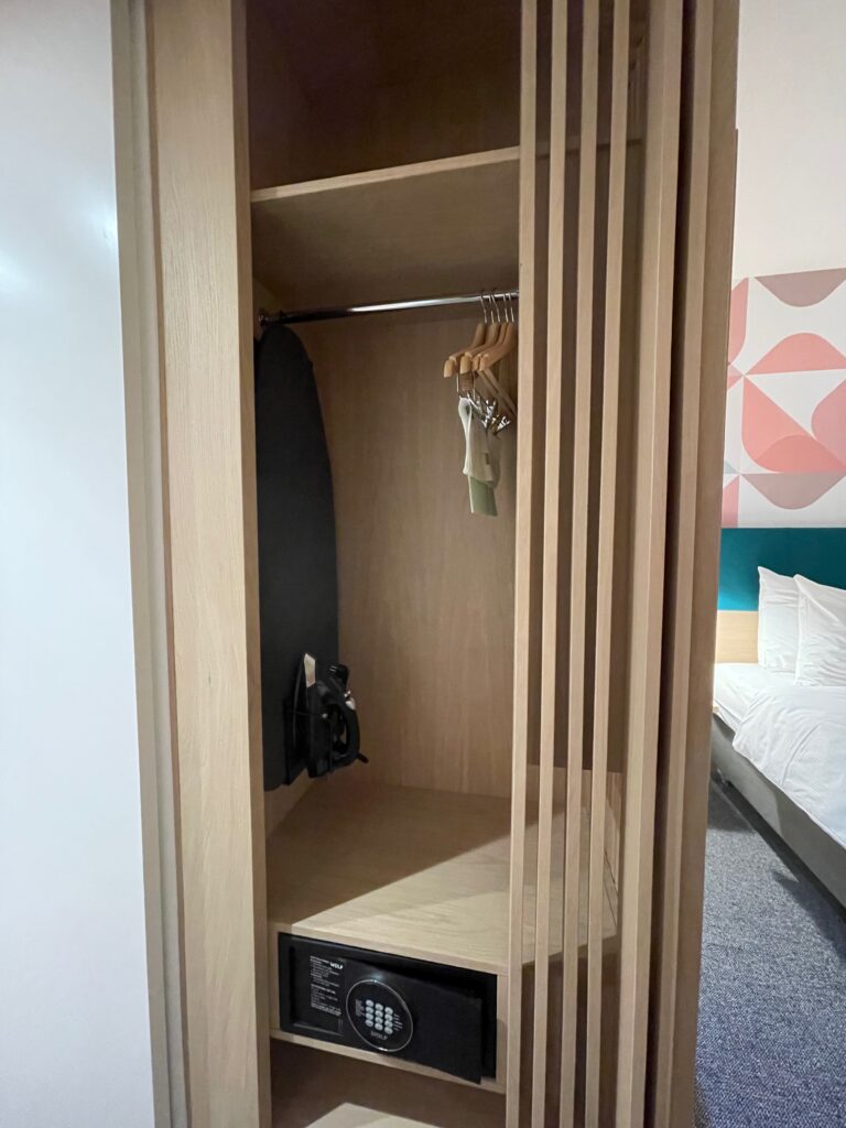 Pokój jest raczej mały – ale dla nas wystarczający. To, co nam się nie podoba już od samego wejścia to fakt, że jest on połączony z sąsiednim. Nie lubimy pokoi przechodnich i nasi stali Czytelnicy z pewnością o tym wiedzą. Z nieznanych nam powodów, hotele lubują się w przydzielaniu tego typu pokojów gościom, którzy nie potrzebują tego rozwiązania.