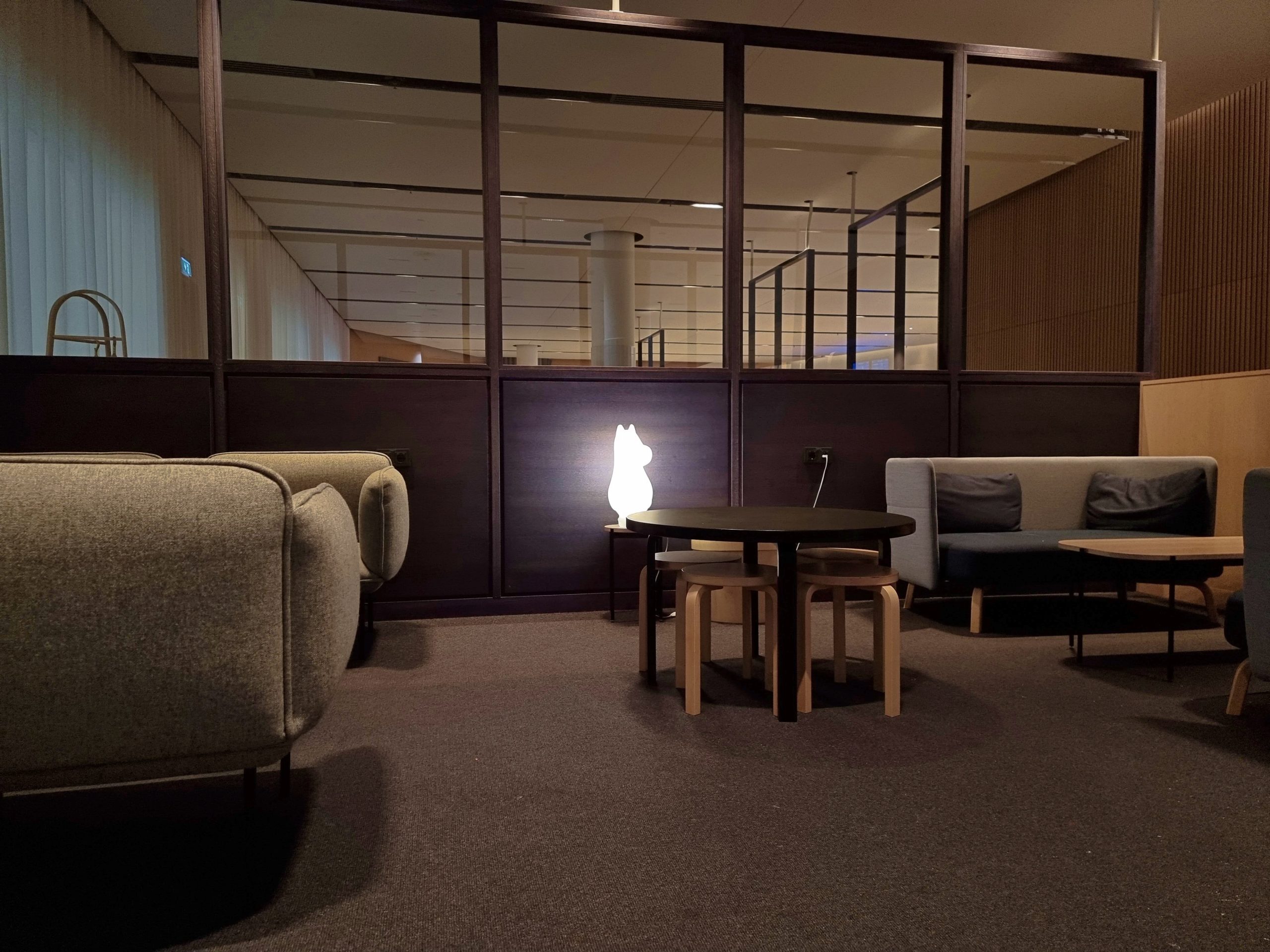 Finnair Lounge Non-Schengen, Helsinki – sala przy wejściu – lampa Muminek