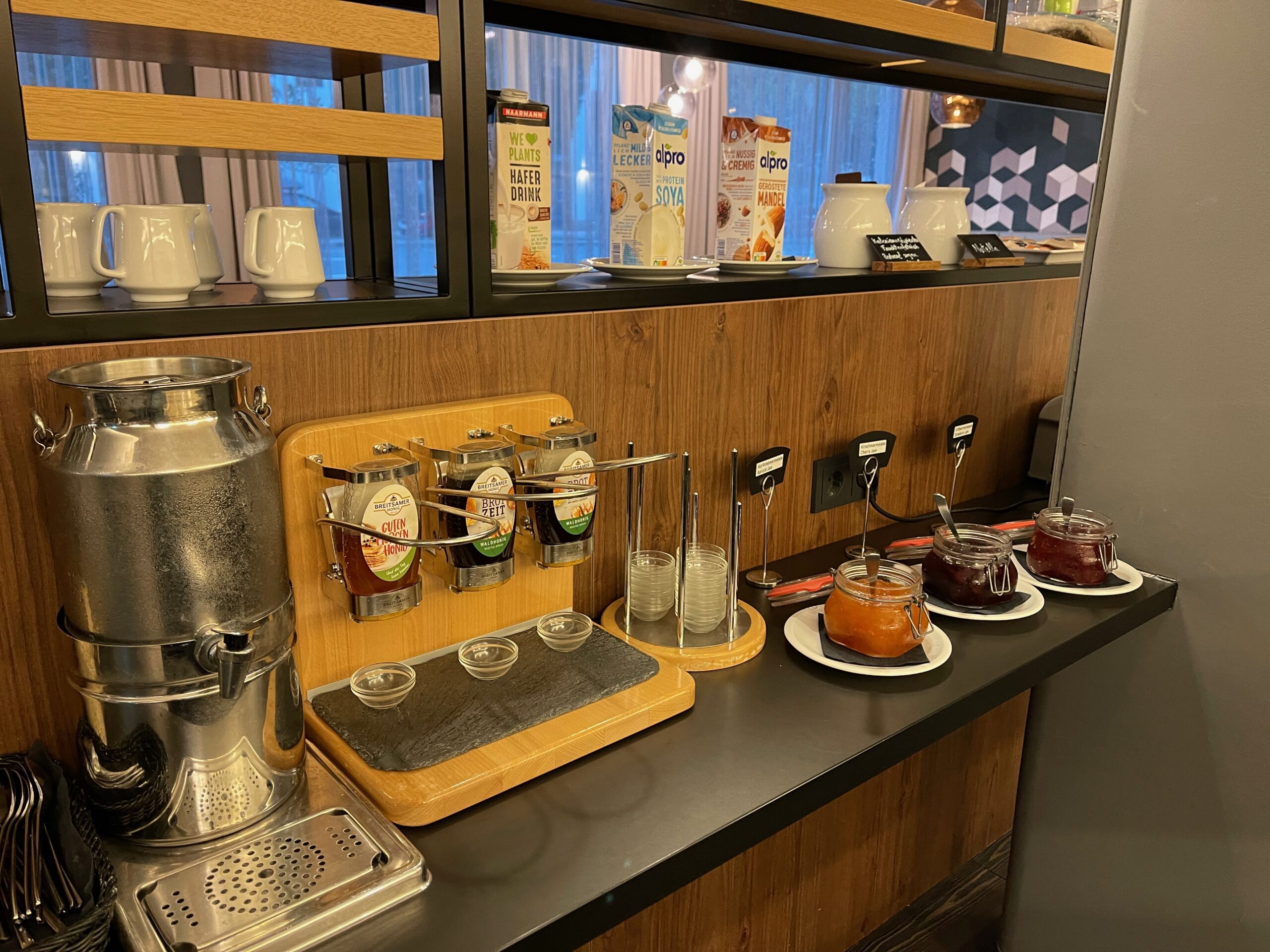 Holiday Inn Salzburg City – śniadanie – bufet – dżemy, miody, mleka