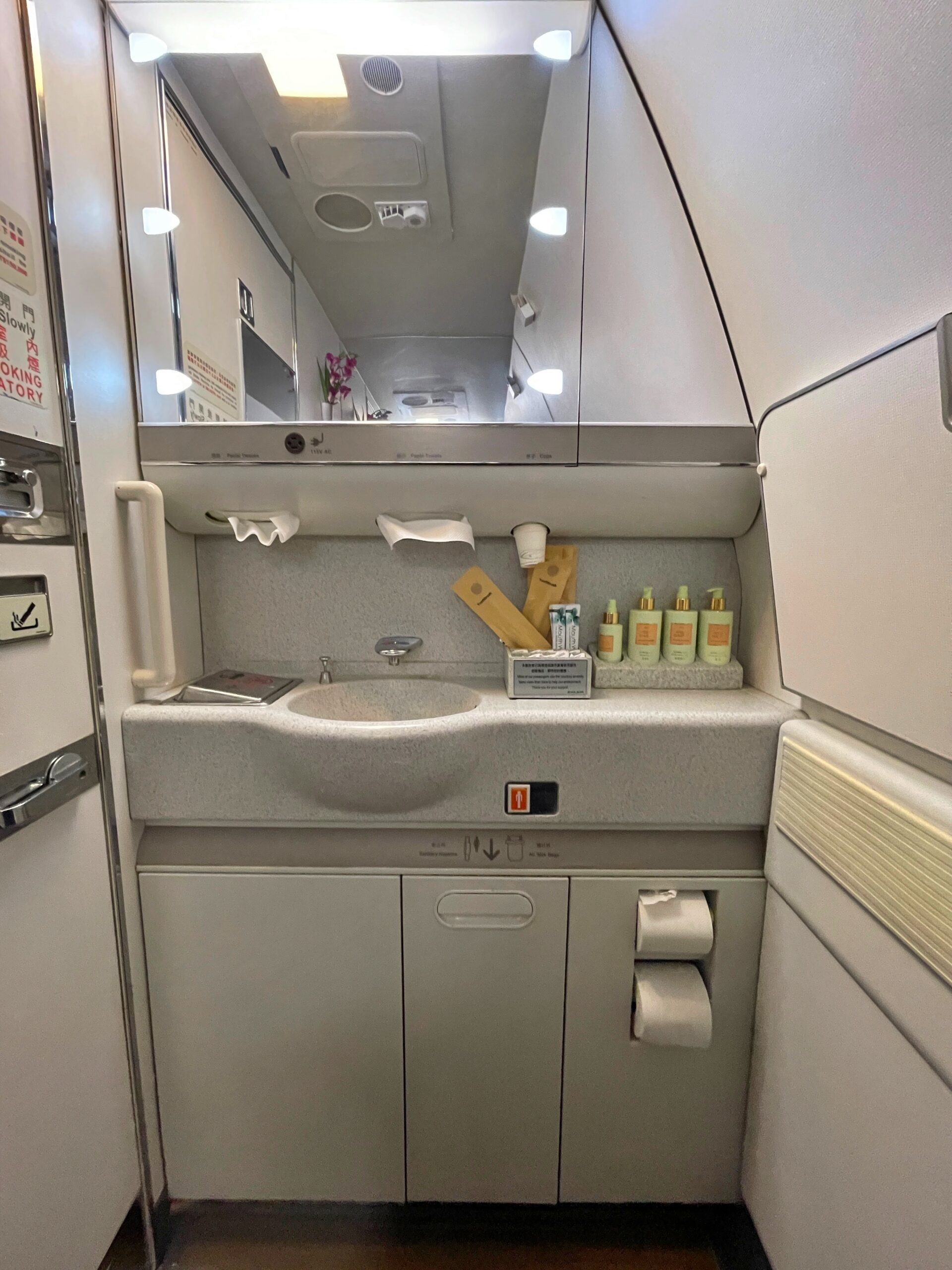 Eva Air – Klasa Biznes w Boeing B777 Chicago – Tajpej – toaleta