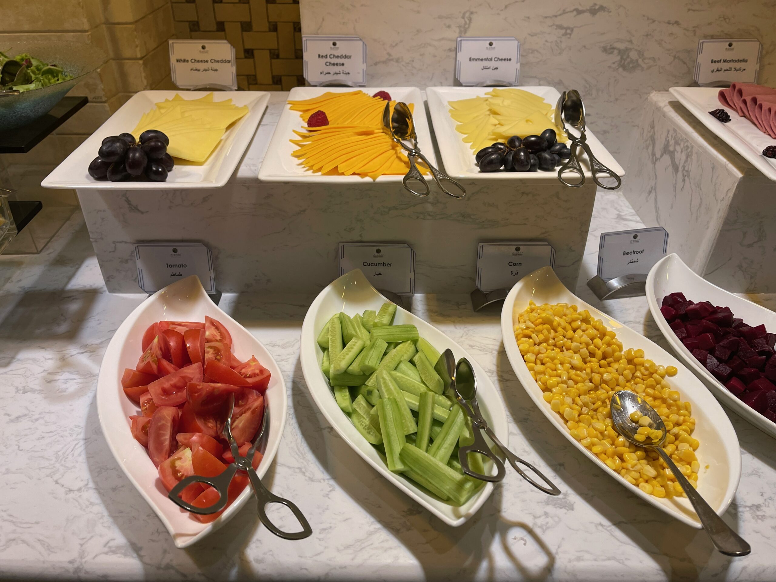 InterContinental Durrat Al Riyadh Resort & Spa – Restauracja Les Palmiers – śniadanie – bufet – sery, warzywa