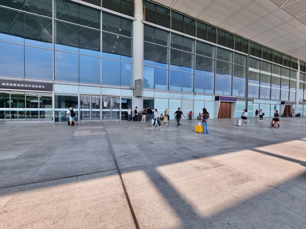 Po wyjściu z peronu trzeba przejść przez bramki z kontrolą biletów. Chińczycy korzystają z automatycznych czytników z dowodami, natomiast my z paszportami podchodzimy do pracownika, który weryfikuje nasze dokumenty. Warto zaznaczyć, że w pociągu nie były sprawdzane bilety, a kontrola uprawnień do przejazdu jest prowadzona właśnie na stacji początkowej i końcowej przez weryfikację dokumentów tożsamości.