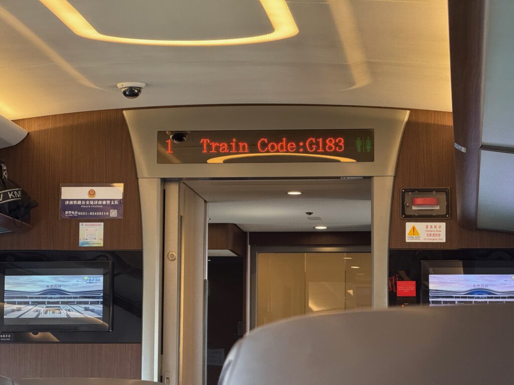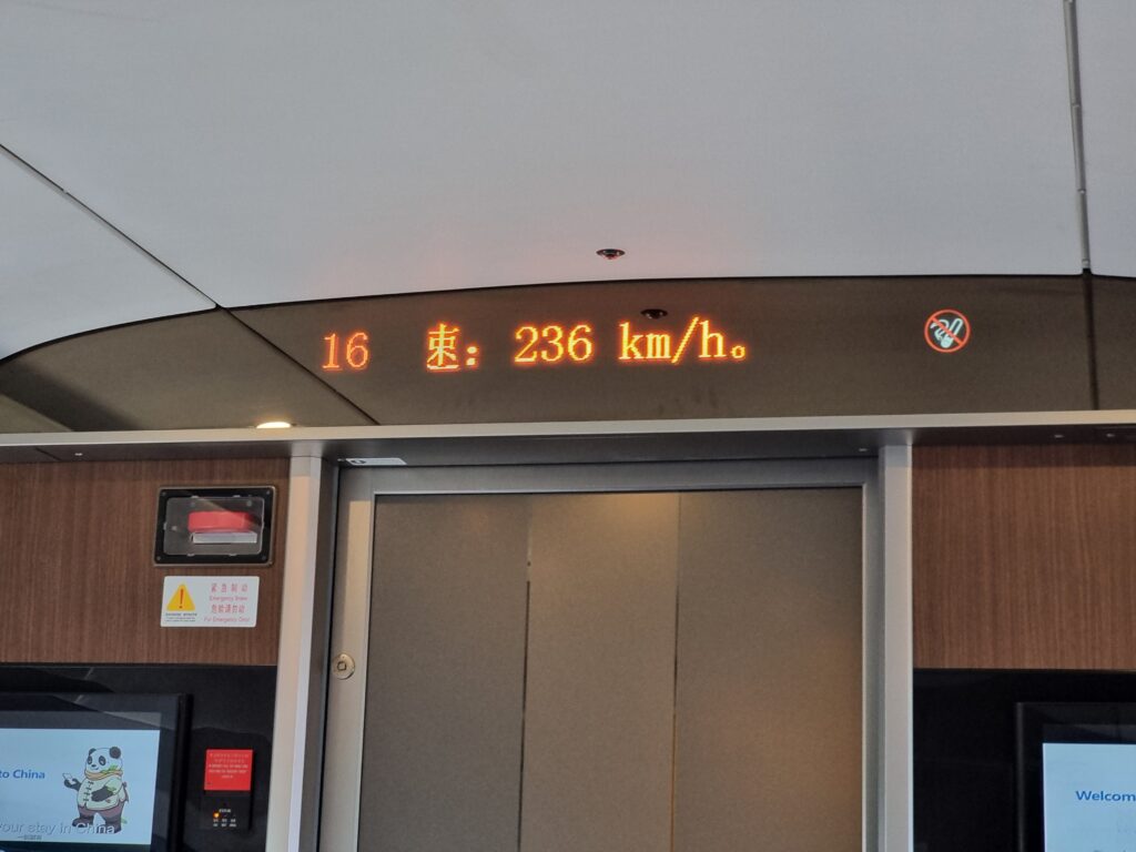 W wagonach są wyświetlacze, które informują pasażerów zarówno w języku chińskim jak i angielskim jaka jest trasa pociągu, kolejne stacje, z jaką prędkością aktualnie jedziemy oraz jaka jest temperatura powietrza.