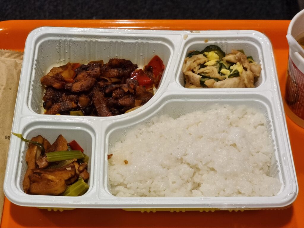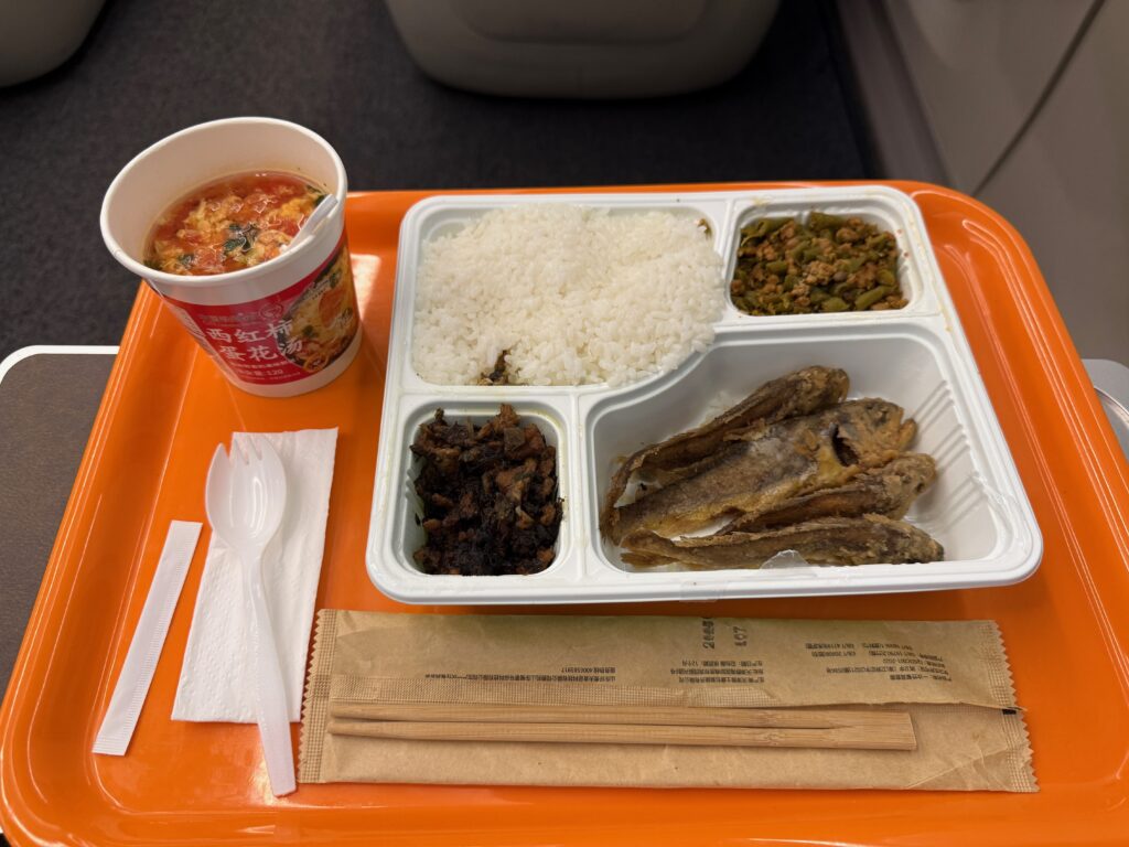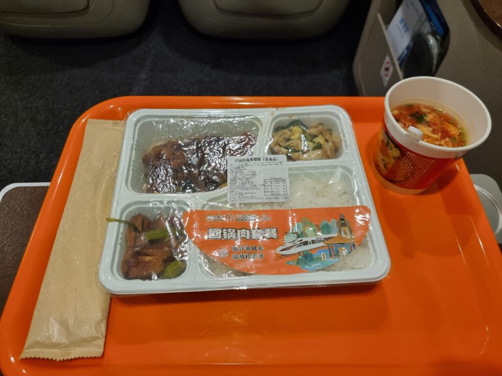 Niespełna pół godziny po wyjeździe z Xi’an pojawia się lunch – danie główne oraz zupa w kubku.