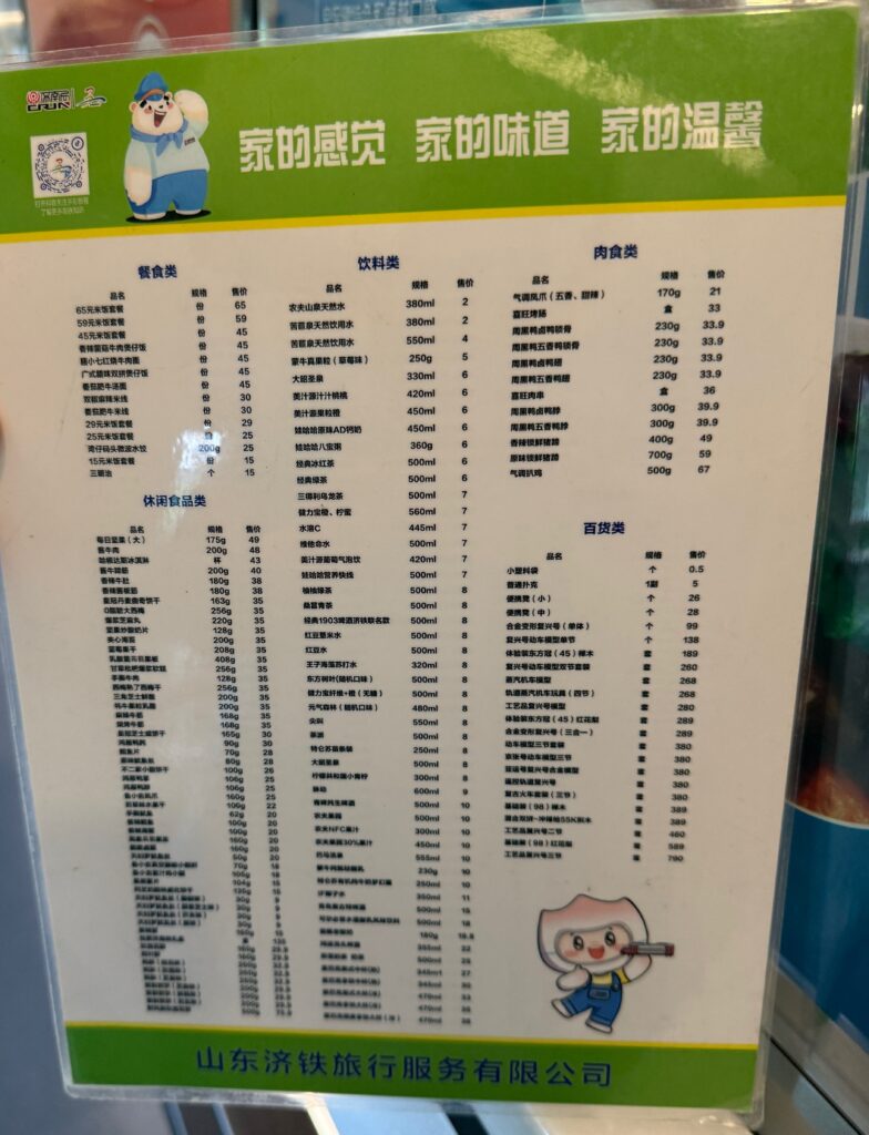 Mniej więcej na wysokości połowy składu pociągu znajduje się przedział gastronomiczny, w którym można kupić dania ciepłe, nawet całego pieczonego kurczaka, różne przekąski, napoje oraz kolejowe zabawki.
