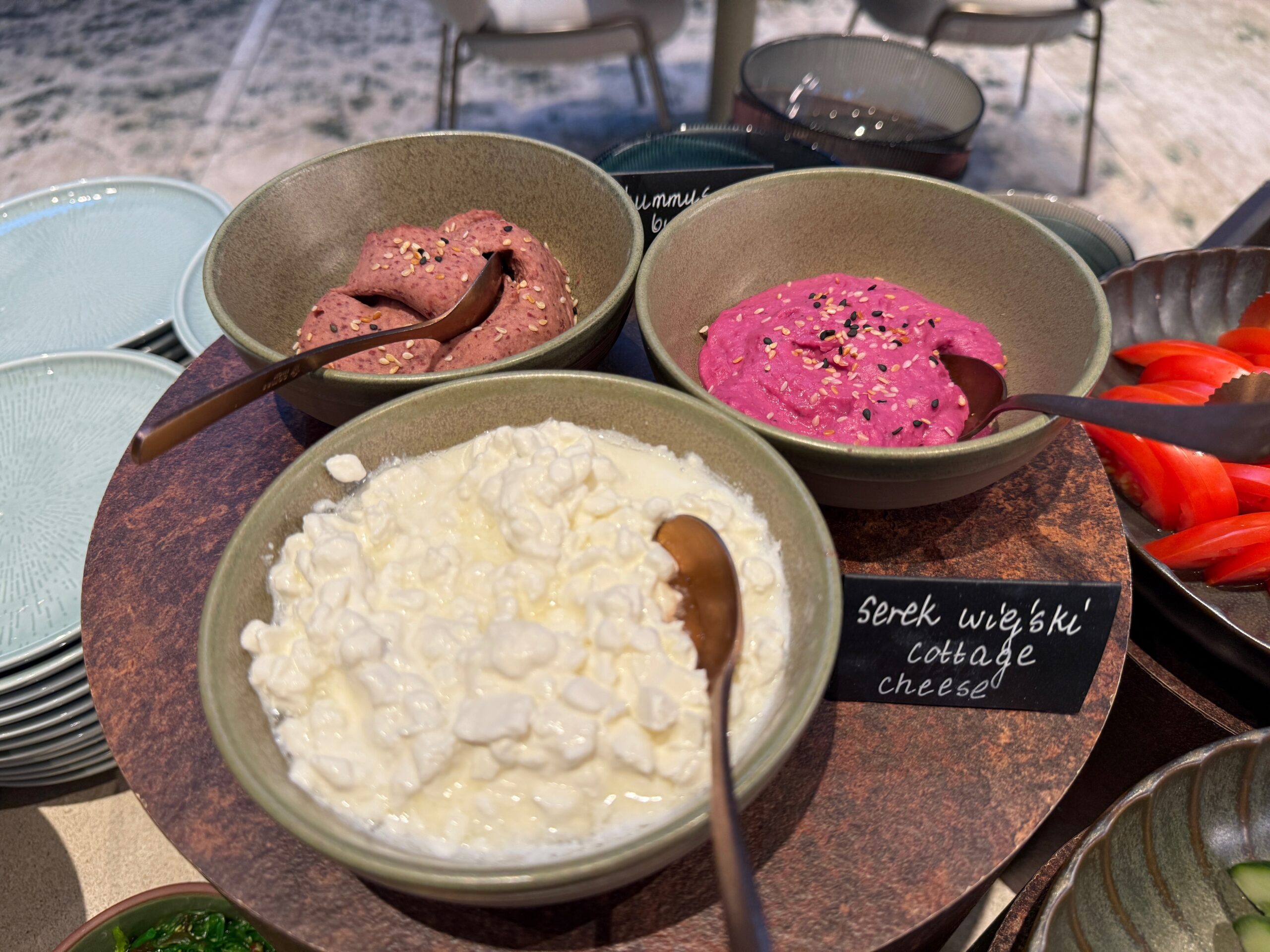 Hotel Verte, Warsaw, Autograph Collection – Pawilon – śniadanie – bufet – serek wiejski, hummus